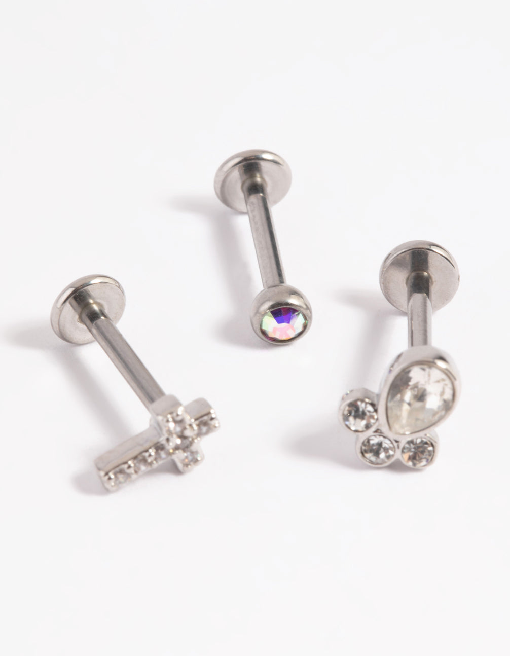 Show off your individuality with Lovisa body jewellery! Our premium body jewellery is made with quality surgical steel to avoid skin irriation and ensure pieces are comfortable for day-to-day wear. This earring pack includes an array of earrings with flat, smooth backings which are suitable for cartilage piercings and ideal for ear stacking.