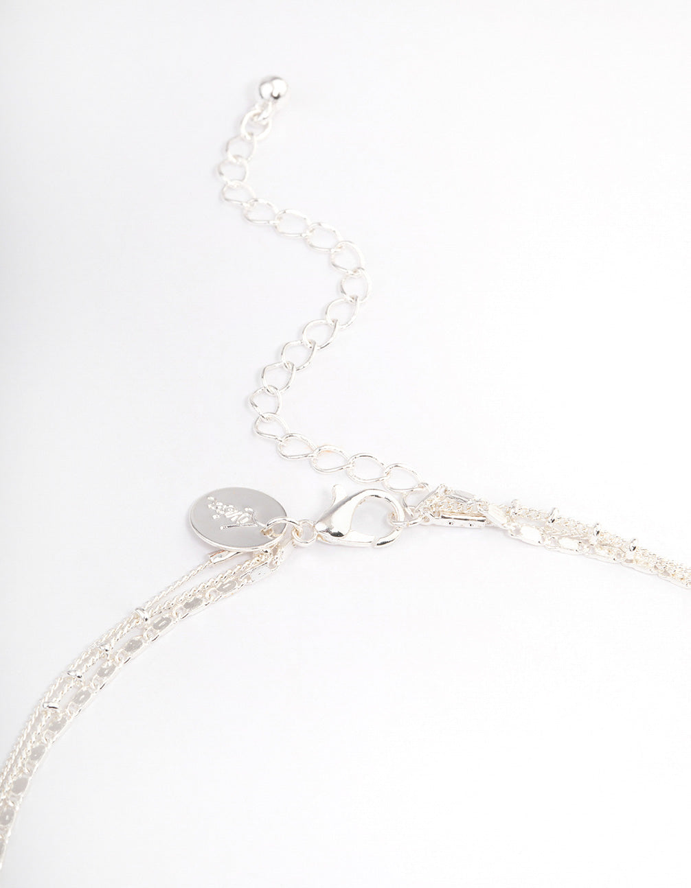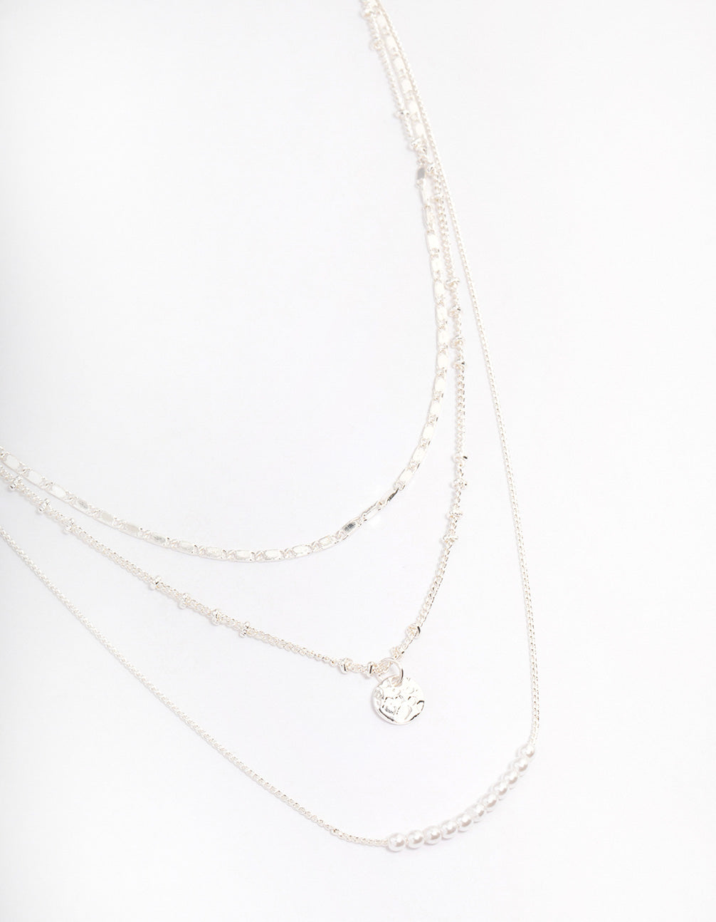 Silver Plated Fine Triple Layered Beaded Disc Necklace