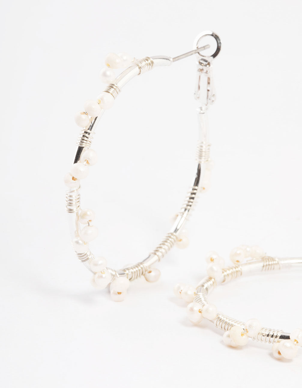 Silver Plated Freshwater Pearl Hoop Earrings Silver Plated Freshwater Pearl Hoop Earrings Silver Plated Freshwater Pearl Hoop Earrings