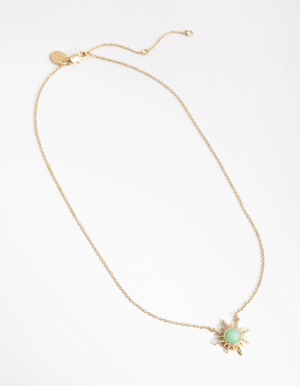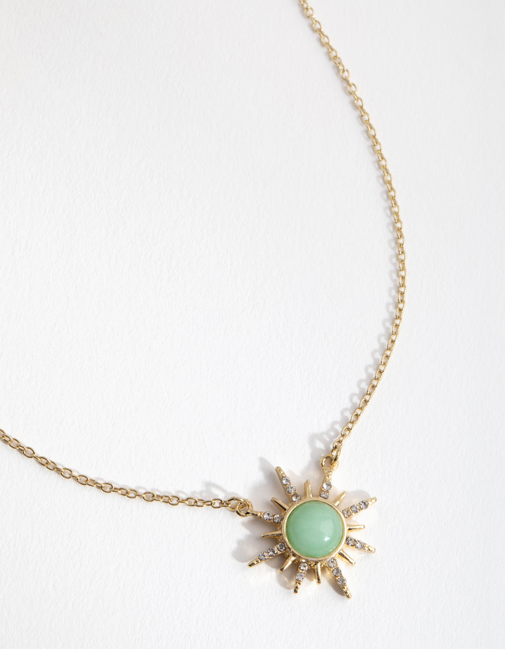 Gold Plated Diamante Semi Precious Jade Sun Necklace Gold Plated Diamante Semi Precious Jade Sun Necklace Gold Plated Diamante Semi Precious Jade Sun Necklace