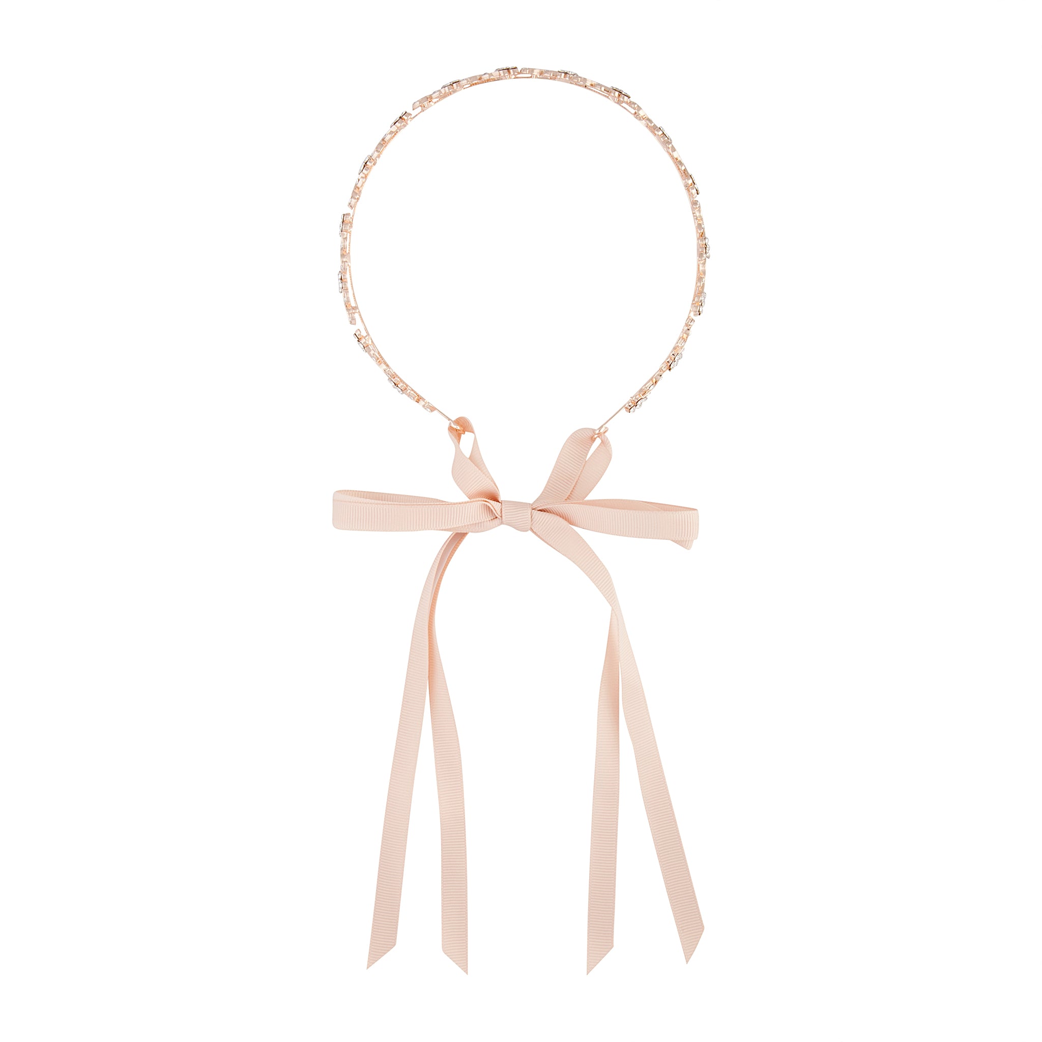 Whether you are heading to a wedding or just wanting to look glamorous for a party, this hair accessory is the perfect way to complete your event ensemble! This tie up headband can be worn as a crown or alice band. It features rose gold tones and diamantes with a matching rose fabric ribbon for easy attachment. Style with rose gold-toned and cubic zirconia accessories to match!