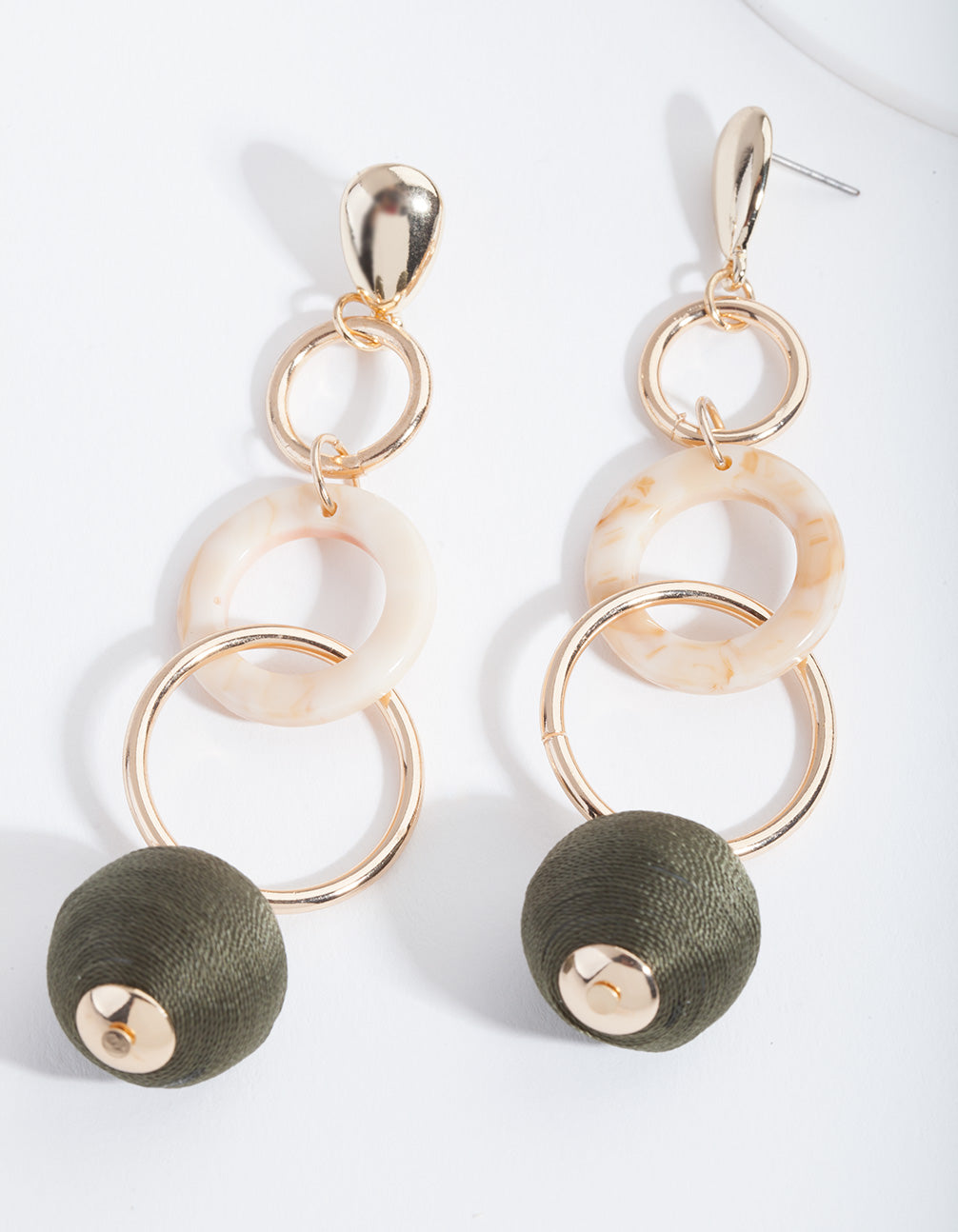 Dress up any outfit with a stunning pair of statement earrings. This style features a gold-toned graduating green ring drop design.