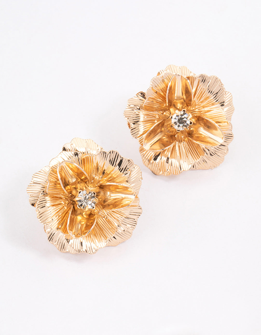 - These statement stud earrings feature a gorgeous, gold setting shaped like a flower for a feminine touch.