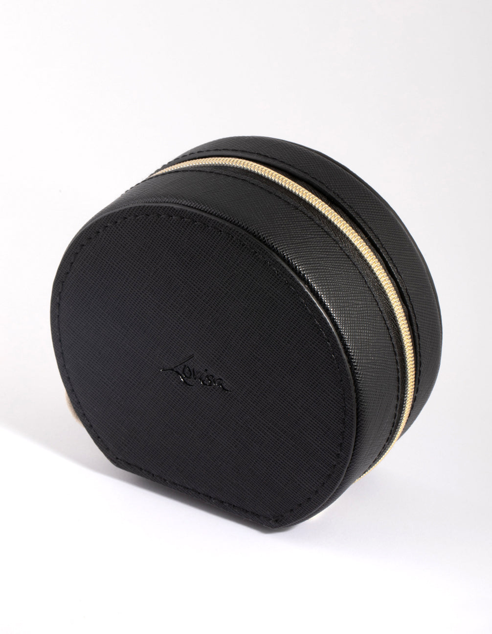 Meet your ultimate travel companion! This compact jewellery box is designed with a black, faux leather exterior and features several compartments to store all your jewellery essentials.