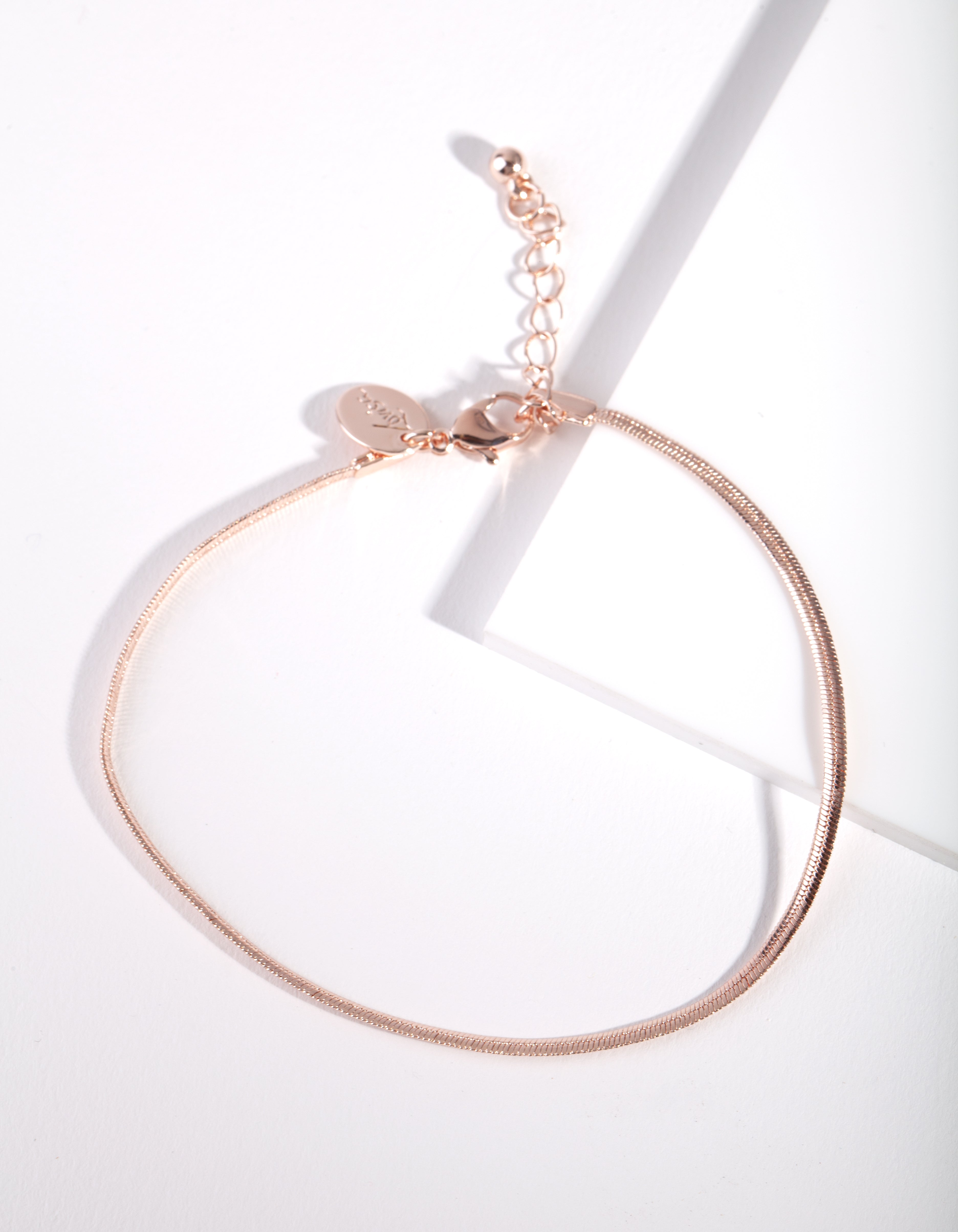 Add detail to your footwear, whether sneakers or an evening heel. This rose gold-toned anklet with a snake chain design will elevate your look. Put your best foot forward in this anklet!