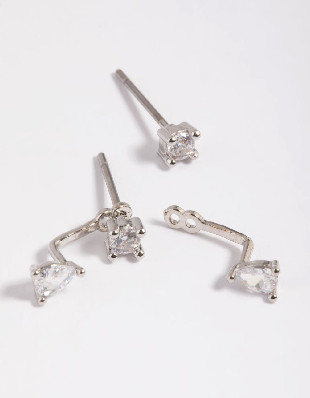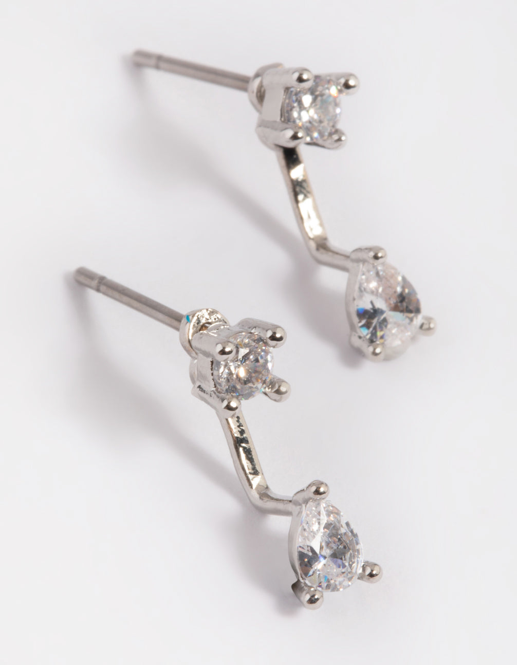 Silver Cubic Zirconia Teardrop Jacket Earrings