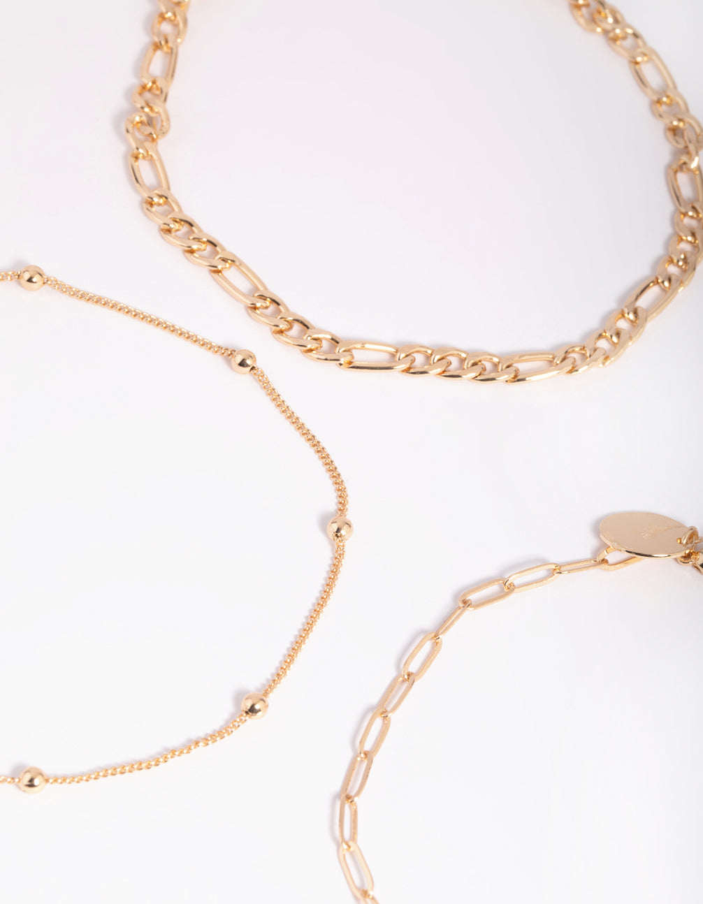 Mix them, match them, stack them! Lovisa loves a layered look! This gold-toned anklet set features a classic chain design. Stack them together for maximum impact and put the finishing touch on a sandal or wedge look.