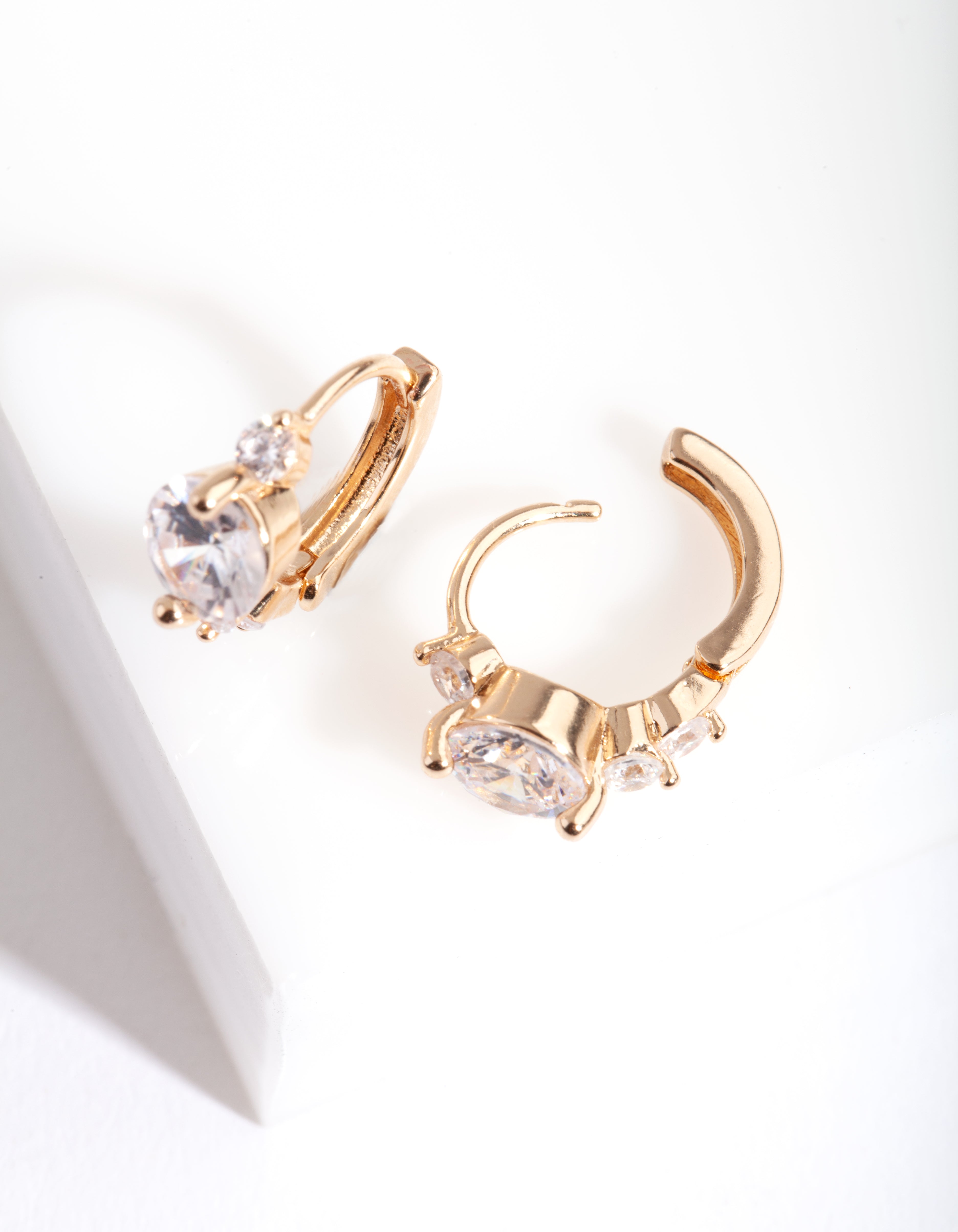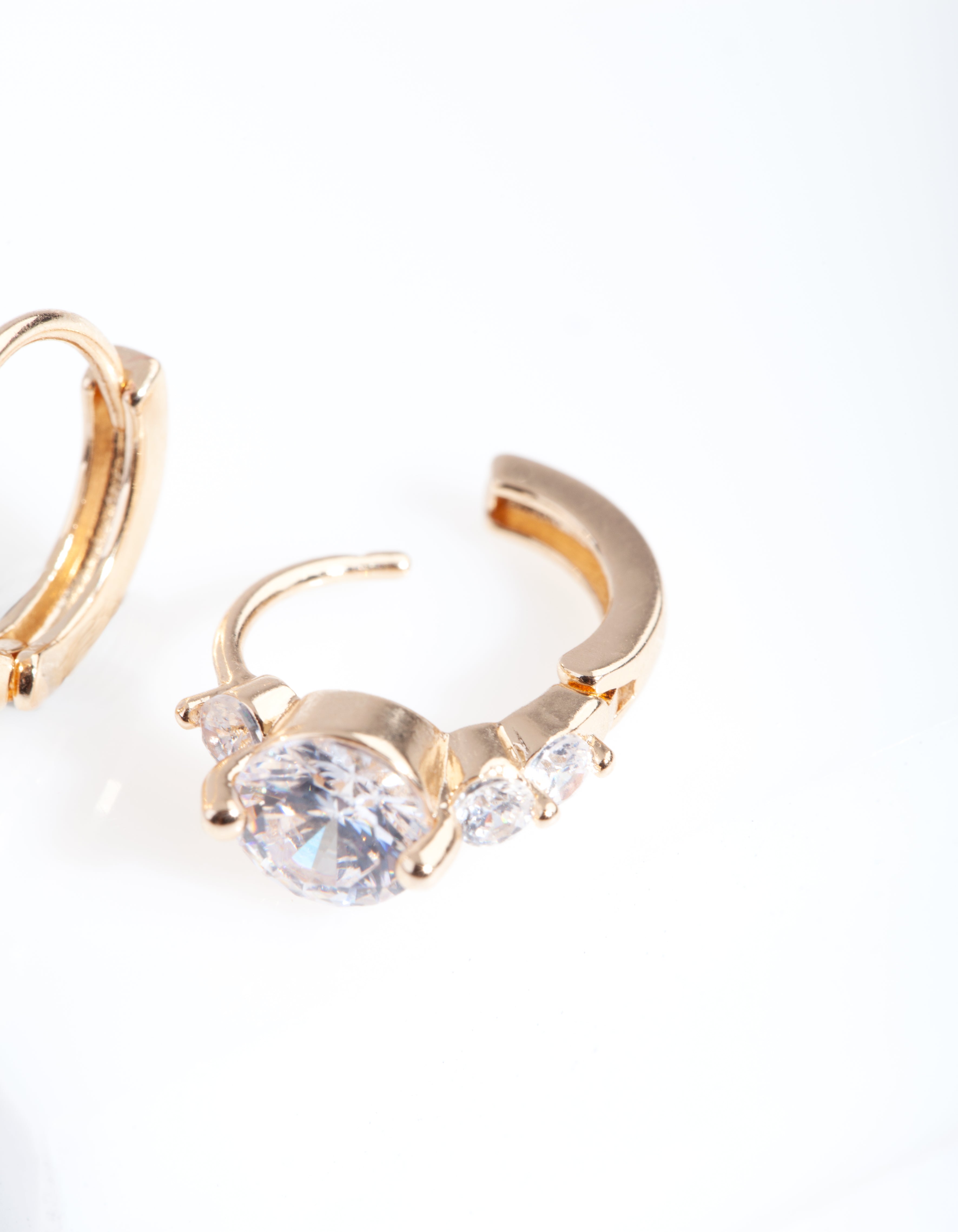 Stack it up with huggies! This range is perfect for those with multiple piercings! These gold-toned huggies boasts a centered large cubic zirconia stone.