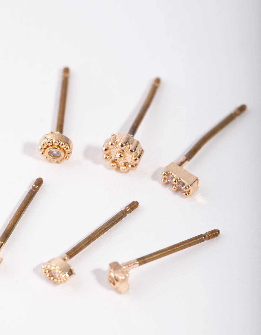 Layer up and create the perfect ear stack with a Lovisa micro earring stack pack! This pack features a variety of miniature gold-toned earrings with a touch of diamante to make you sparkle.