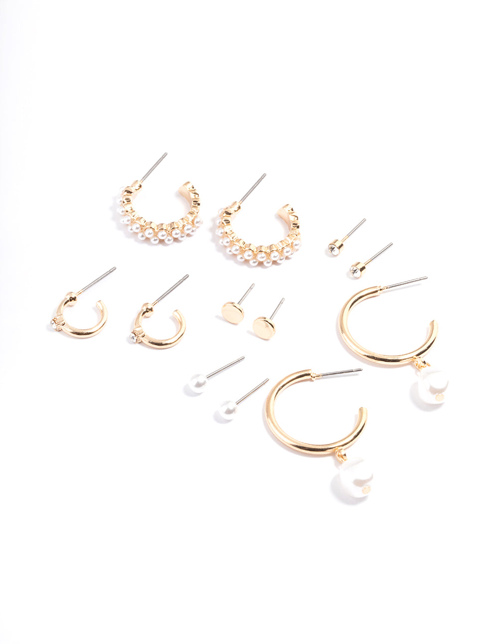 Gold Pearl Diamante Hoop & Stud Earring 6-Pack