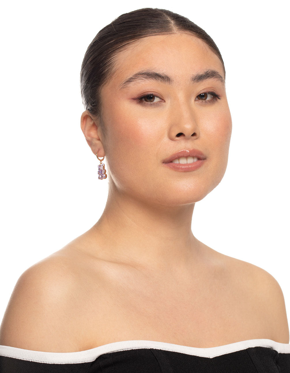 Purple Diamante Teddy Bear Huggie Earrings