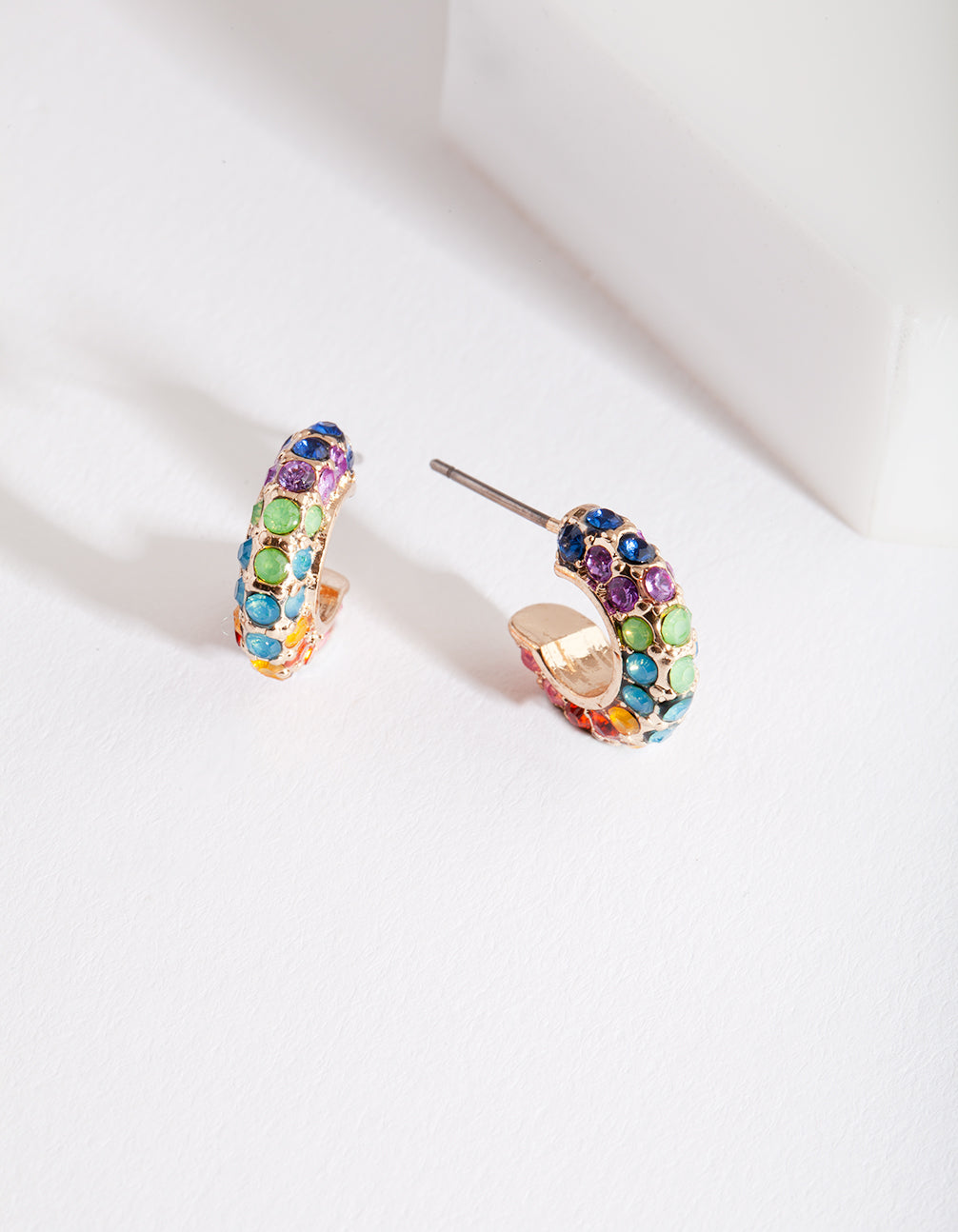 Stack it up with huggies! This range is perfect for those with multiple piercings! These huggies feature a rainbow diamante embellished design.åÊ