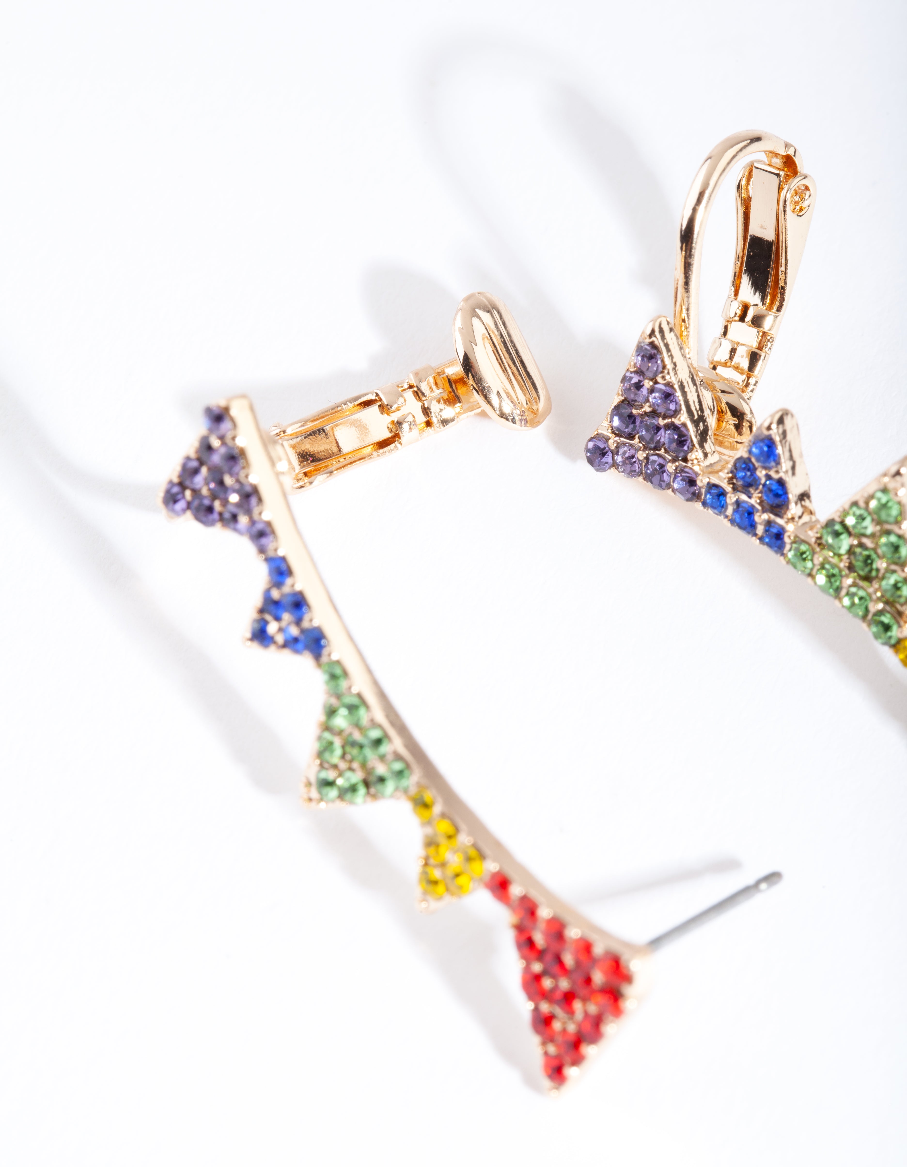 Gold Rainbow Diamante Triangle Cuff Earrings