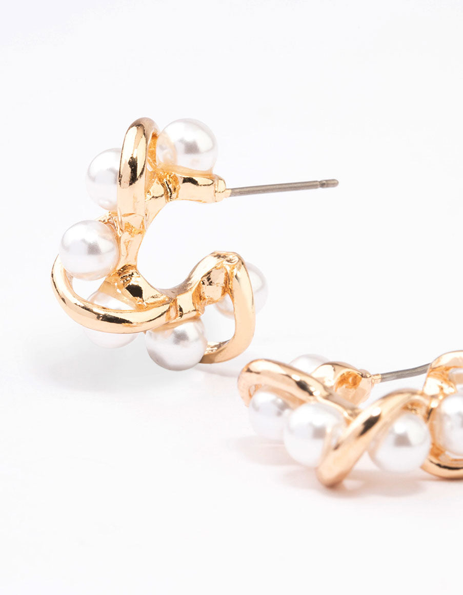 - Style these Gold Small Twisted Pearly Hoop Earrings with matching accessories from our Boutique Collection for a modern finish.