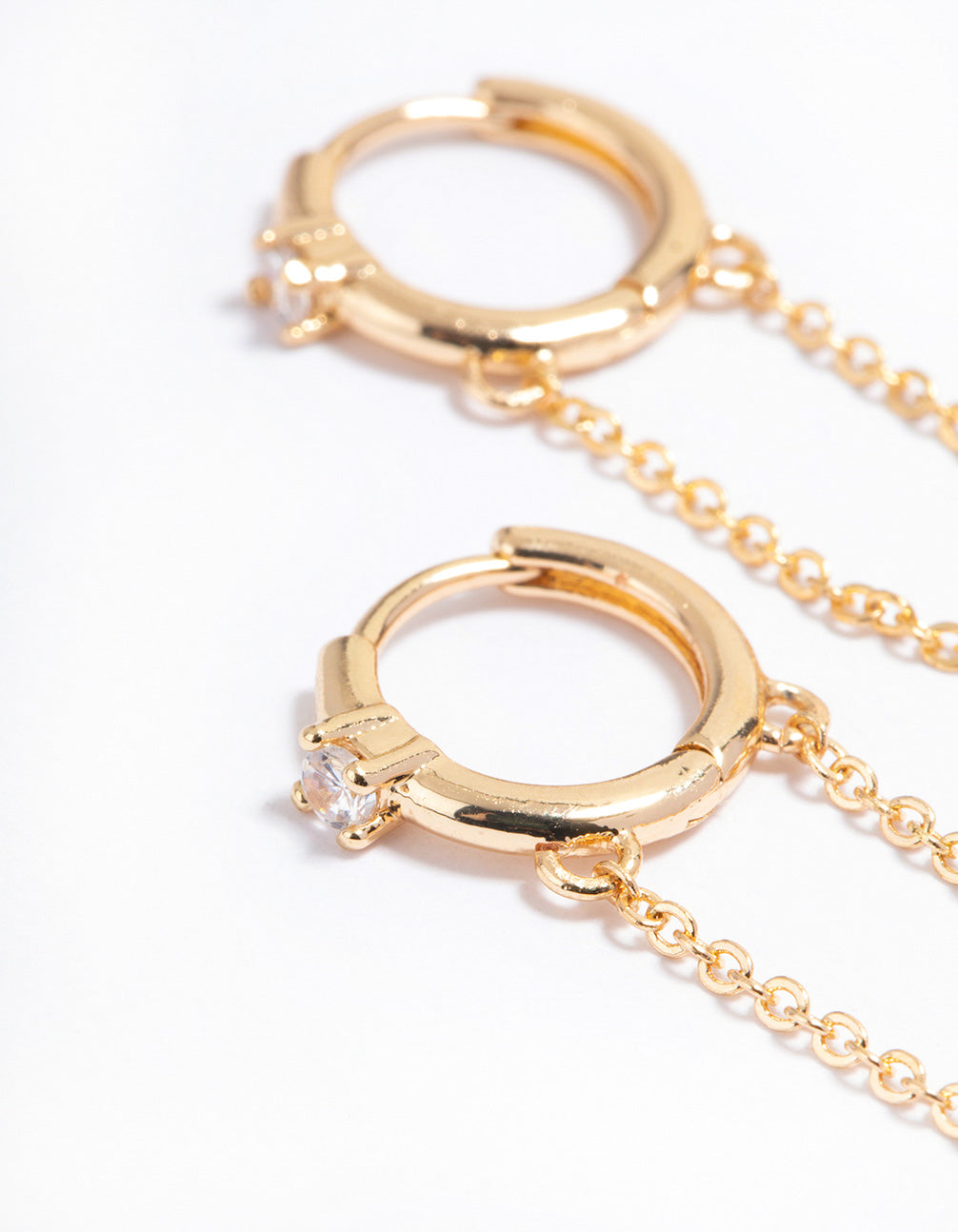 - These huggie hoop earrings feature a gorgeous gold setting and diamante encrusted chain for a chic finish.