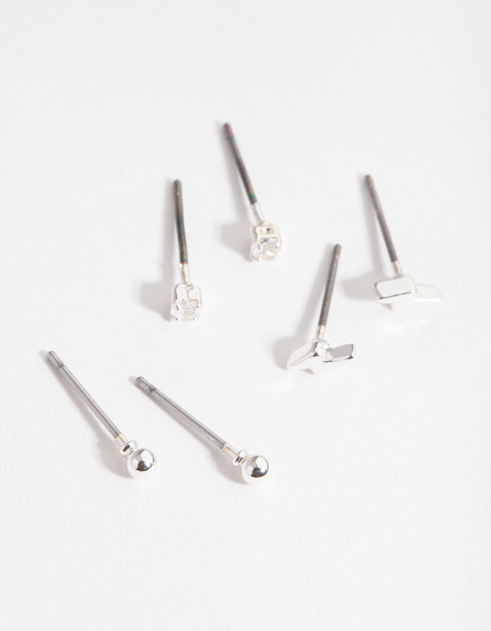 This earring pack is absolutely striking! It includes three pairs of silver-toned studs with a variety of designs which include lightning-shaped studs, as well as a simple pair of ball studs and diamantes to mix and match into your ear stacks. You'll be shocked by how much you love these!