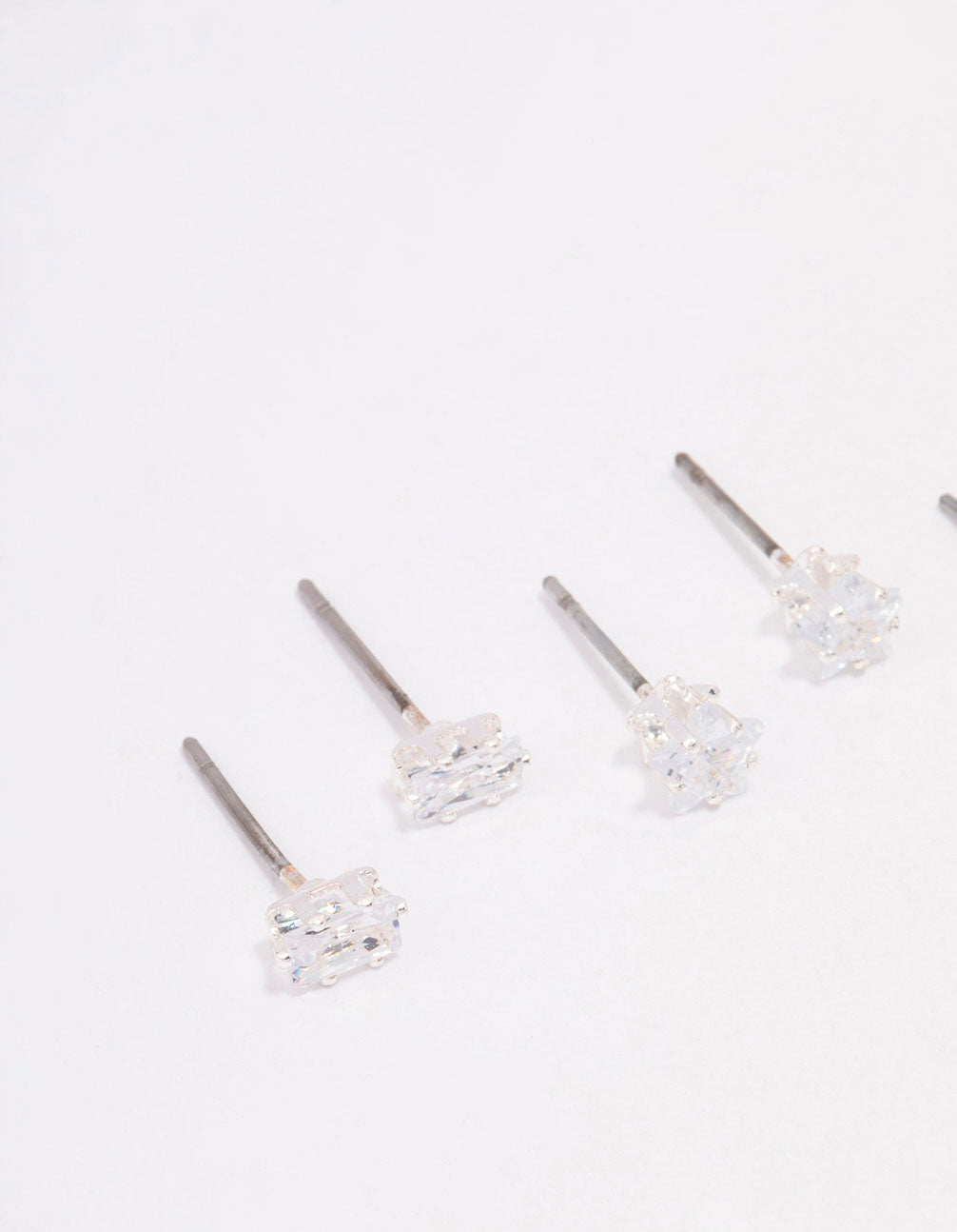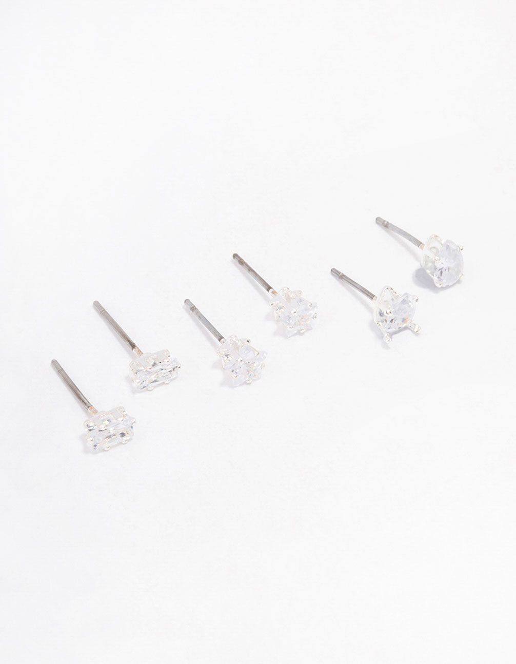 Silver Cubic Zirconia Mixed Shape Stud Earrings 3-Pack