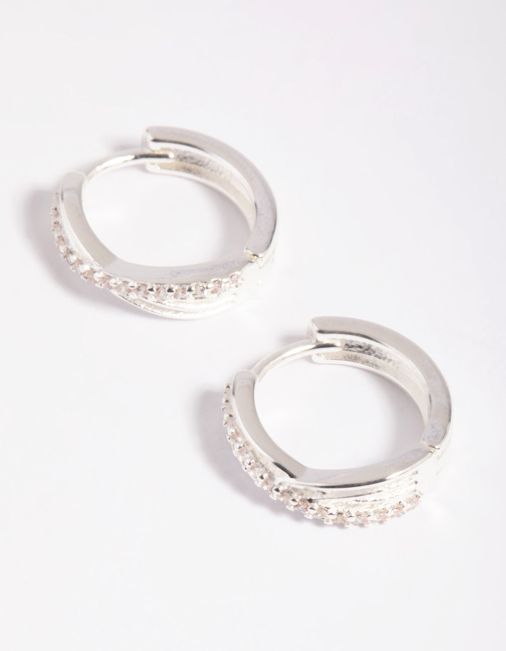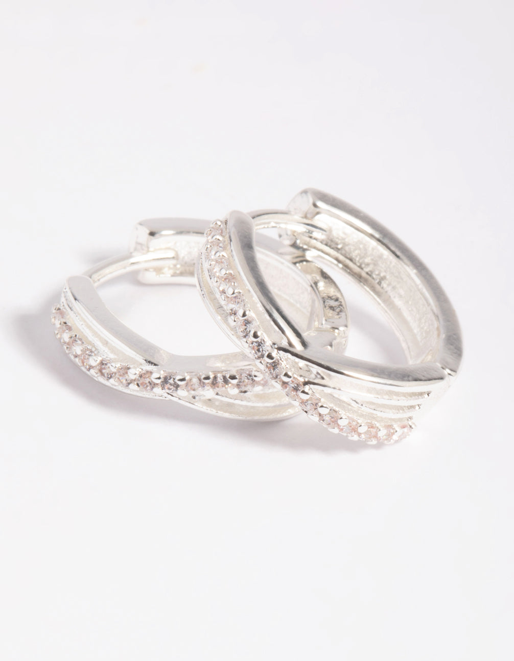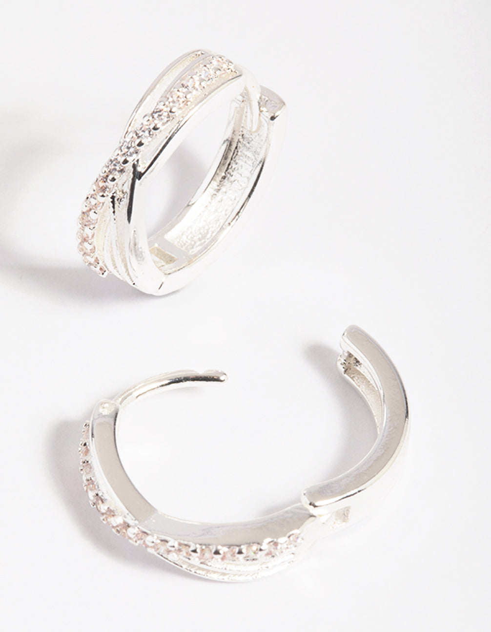 Silver Cubic Zirconia Twisted Huggie Hoop Earrings