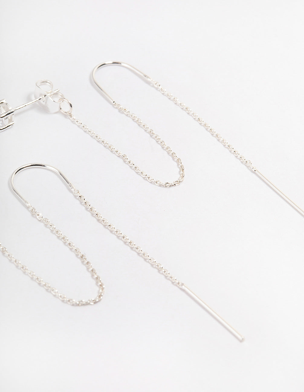 - These drop earrings feature a stunning, silver-toned setting and delicate chain for a dainty touch.