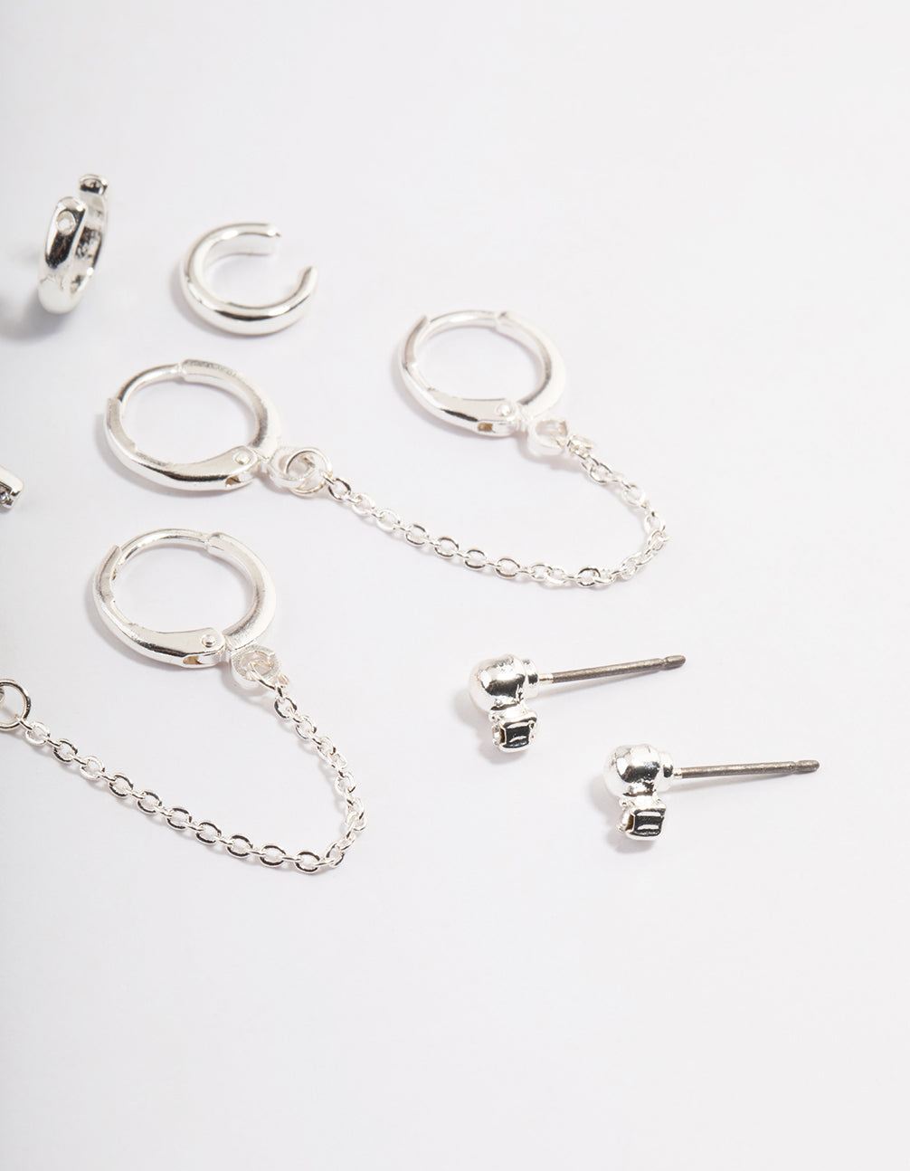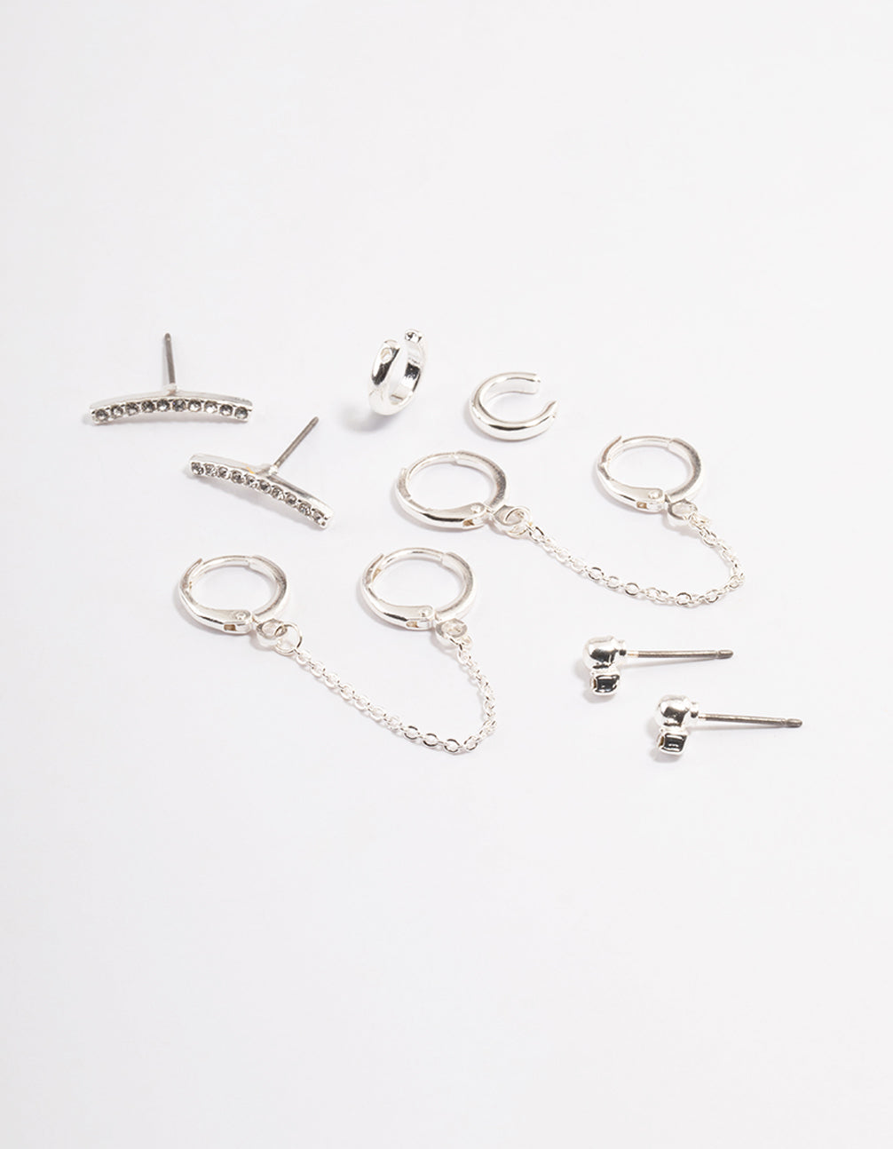 Silver Diamante Huggie Chain Earrings 5-Pack