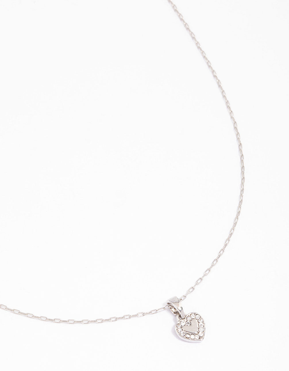 - Style this Silver Diamante Mini Heart Pendant Necklace, featuring a sparkling mini heart pendant, for a chic and charming finish to your outfit.