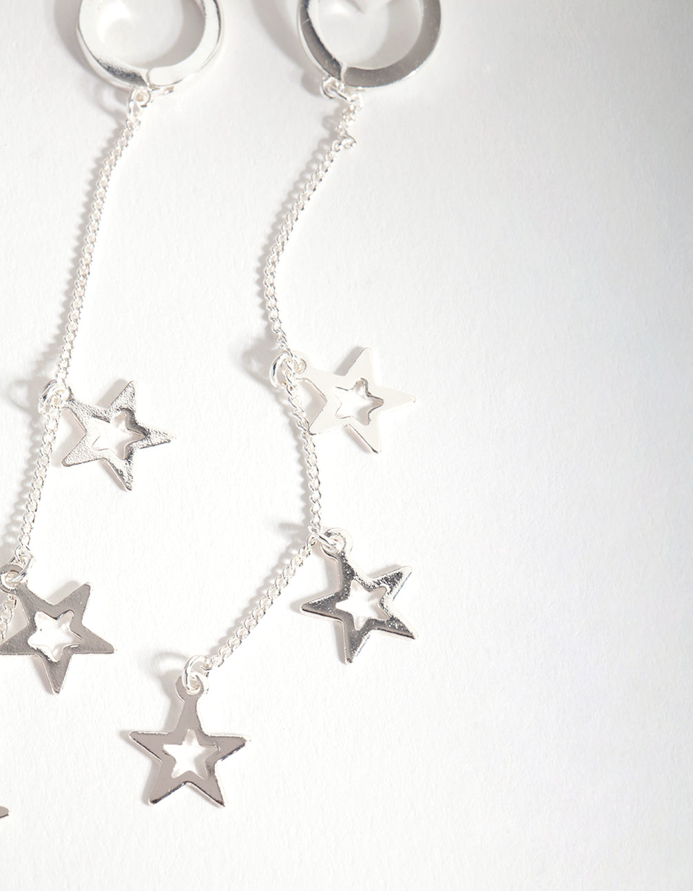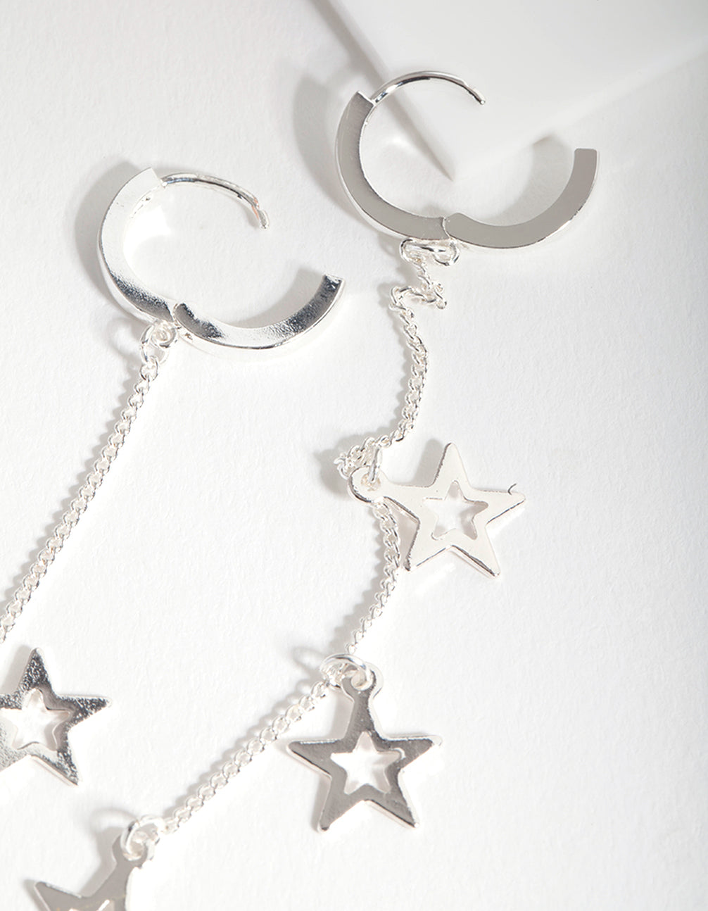 A fun pair of fashion earrings are an easy way to spice up your daily ensembles! This pair features a dainty chain with cut-out star charms on a classic silver-toned setting. Style with other fine silver jewellery items for a refined look.