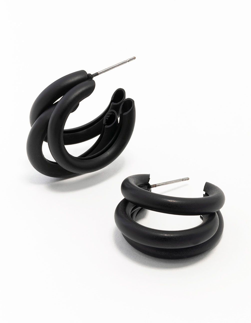 Looking for the perfect statement earrings? Check out these Black Coated Triple Statement Hoop Earrings. Their triple statement design adds an edgy layer, making them the perfect addition to your most fabulous outfits for extra visual interest.