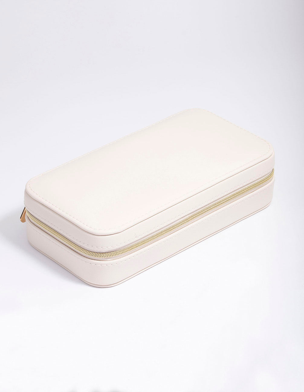 Meet your ultimate travel companion! This compact jewellery box is designed with a cream, faux leather exterior and features several compartments to store all your jewellery essentials.
