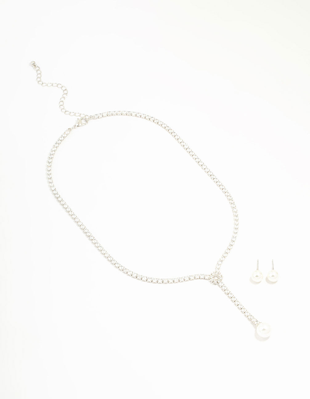 • Silver Cubic Zirconia Pearl Y-Necklace & Earrings Set - link has visual effect only