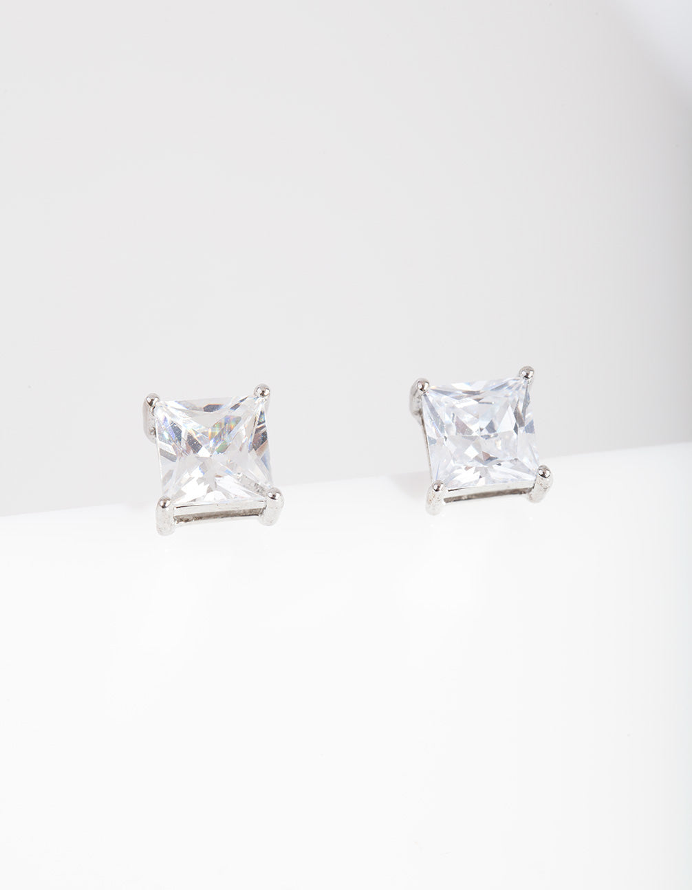 Silver Cubic Zirconia 7mm Square Stud Earrings