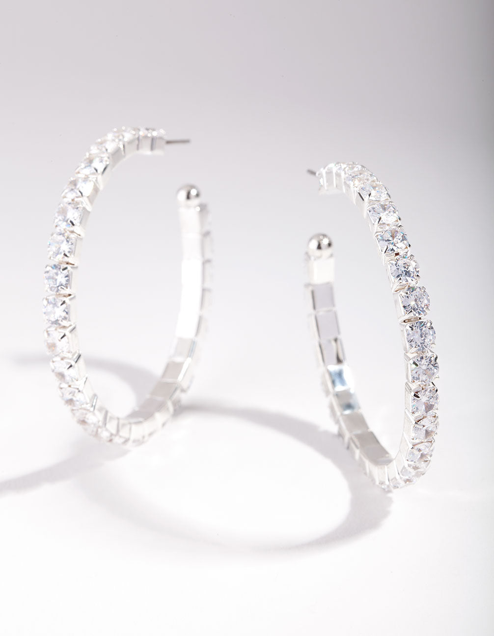Silver Cubic Zirconia Multi Stone Hoop Earrings Silver Cubic Zirconia Multi Stone Hoop Earrings Silver Cubic Zirconia Multi Stone Hoop Earrings