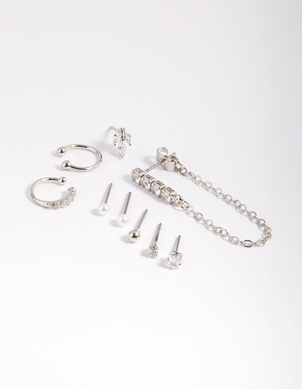 Silver Cubic Zirconia Chain & Pearl Stud Earring 9-Pack