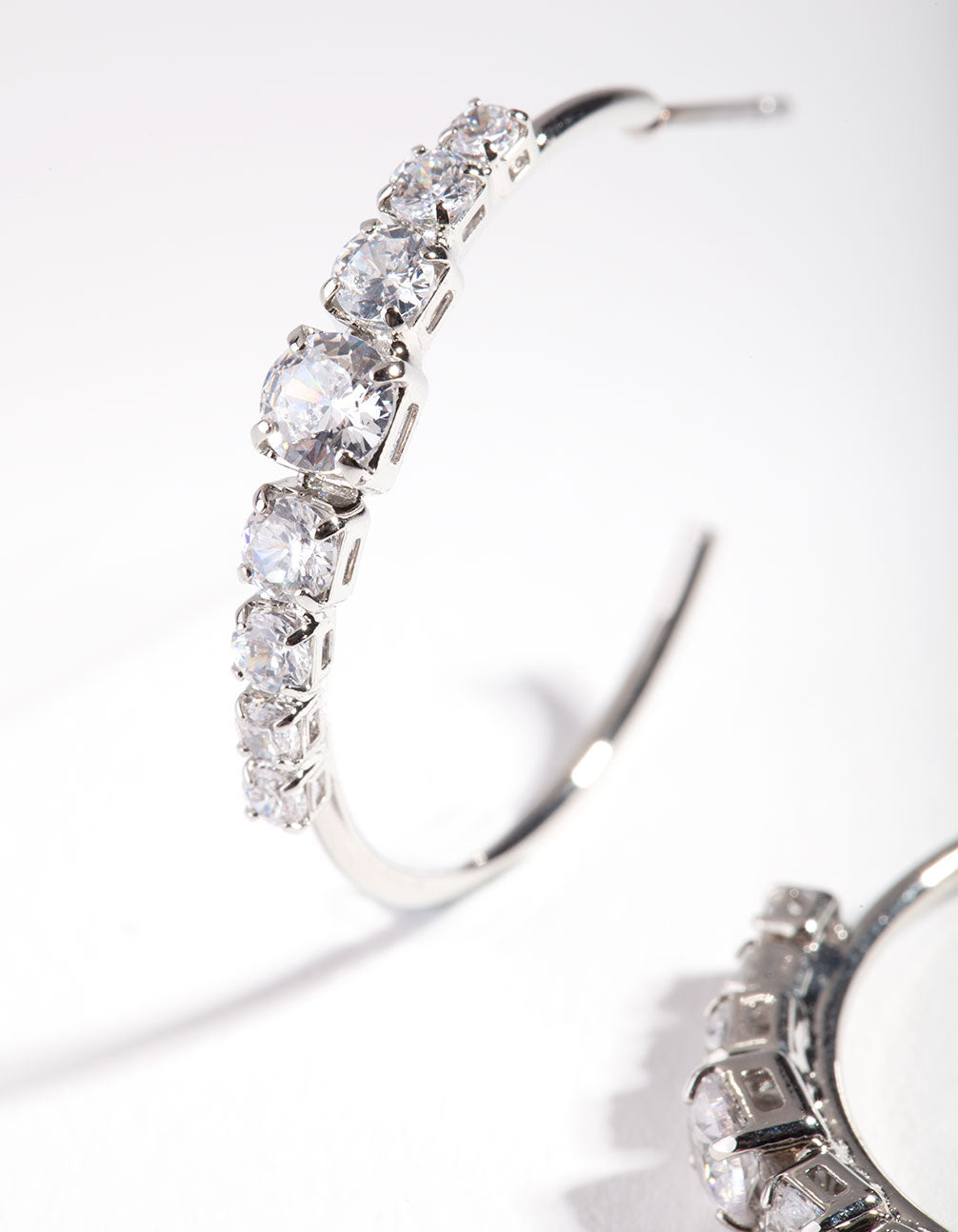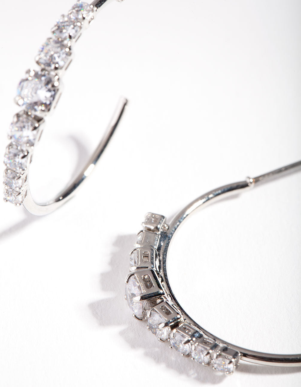 Rhodium Cubic Zirconia Cluster Gem Hoop Earrings