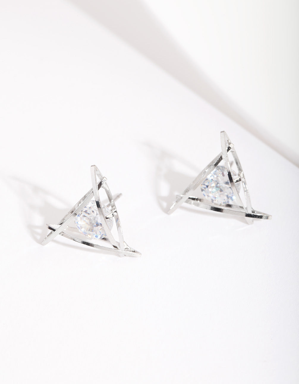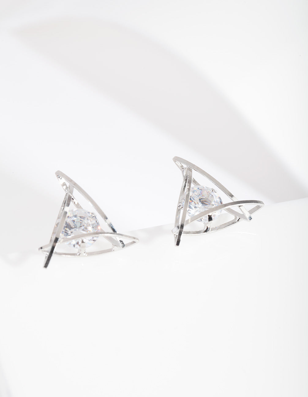 Rhodium Cubic Zirconia Trapped Triangle Earrings