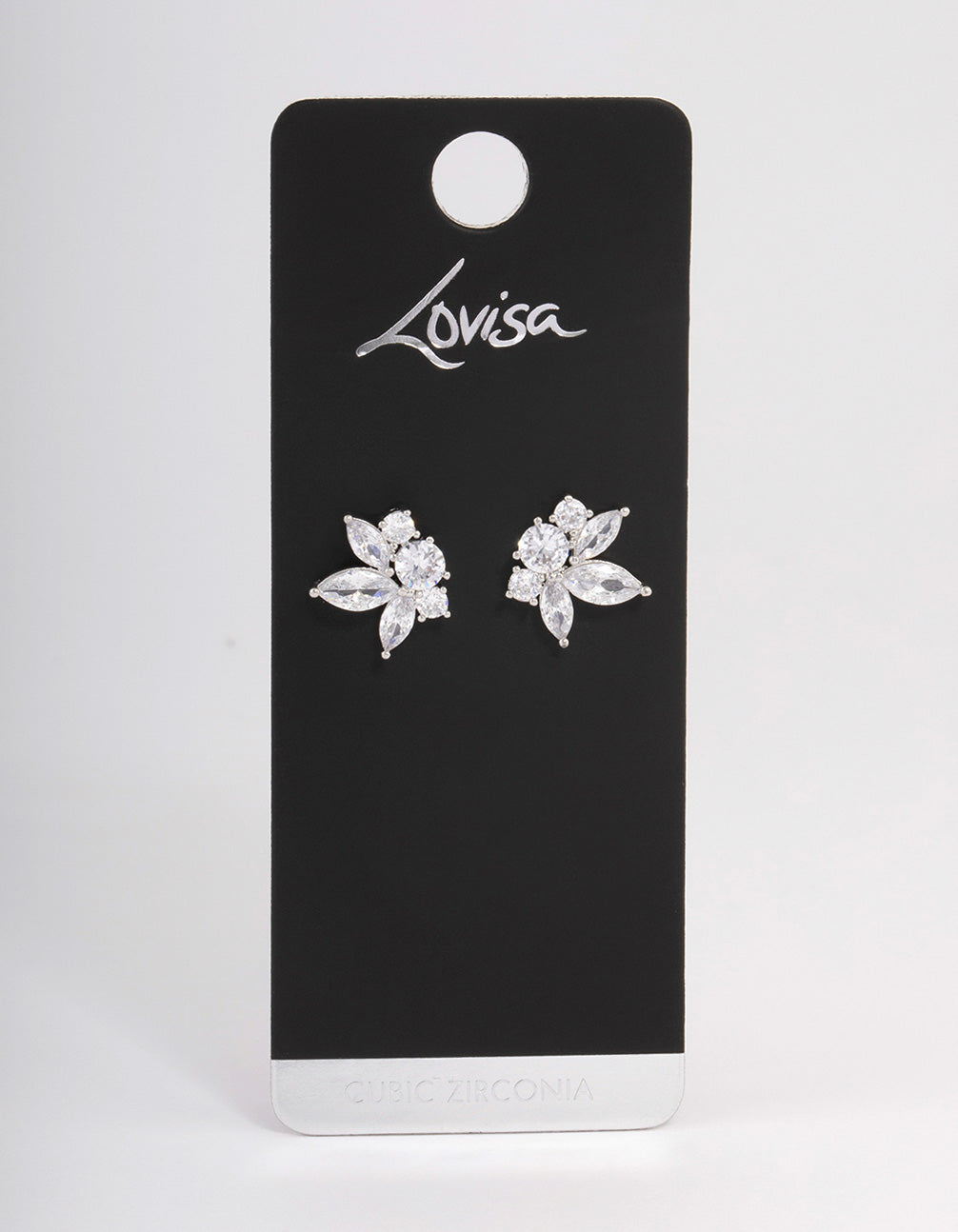 - Style these silver-toned, lotus stud earrings with a set of simple huggie earrings for a curated look.