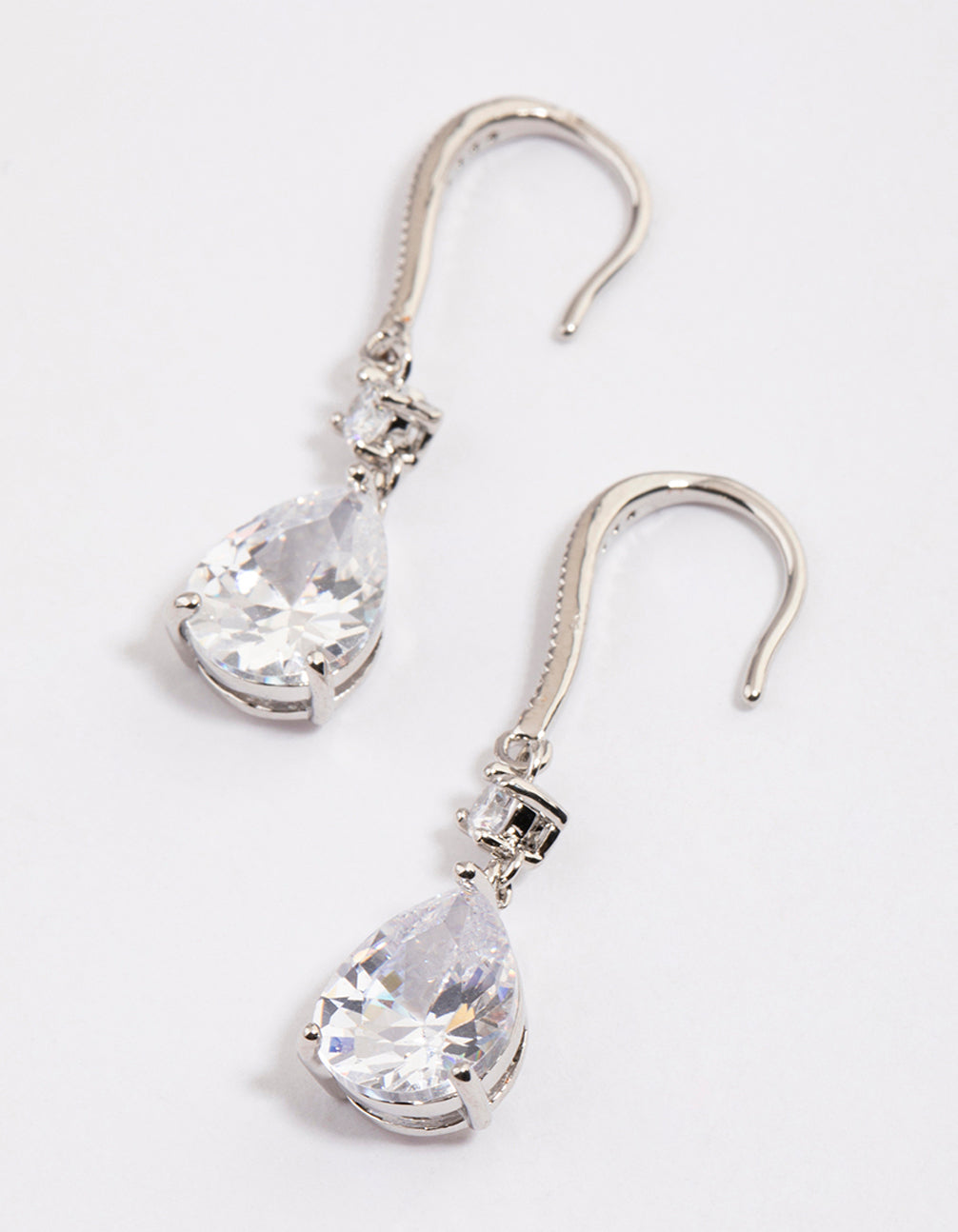 - These drop earrings feature a silver-toned setting with simple, pear-shaped crystals for a timeless look.