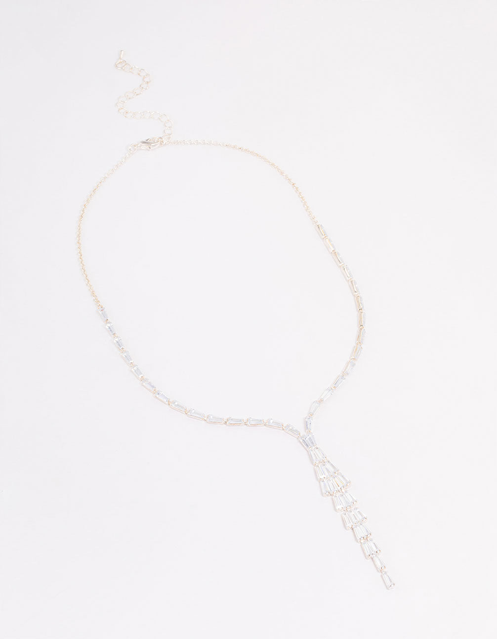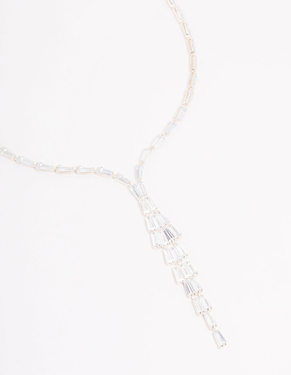 Silver Stone Cubic Zirconia Pendant Station Necklace