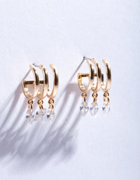 Gold Cubic Zirconia Dia Drop Cuff Hoop Earrings Gold Cubic Zirconia Dia Drop Cuff Hoop Earrings