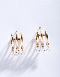 Gold Cubic Zirconia Dia Drop Cuff Hoop Earrings