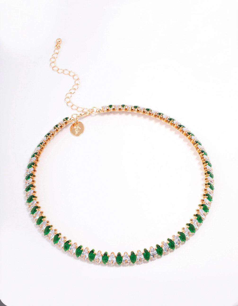 - This dazzling choker necklace features a gorgeous gold-toned setting embellished with navette crystals for a glamorous finish.
