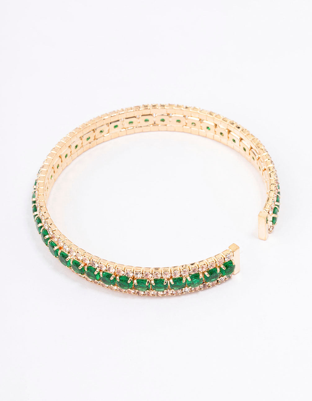 - This wrist cuff features emerald coloured, cubic zirconia crystals for an embellished finish.