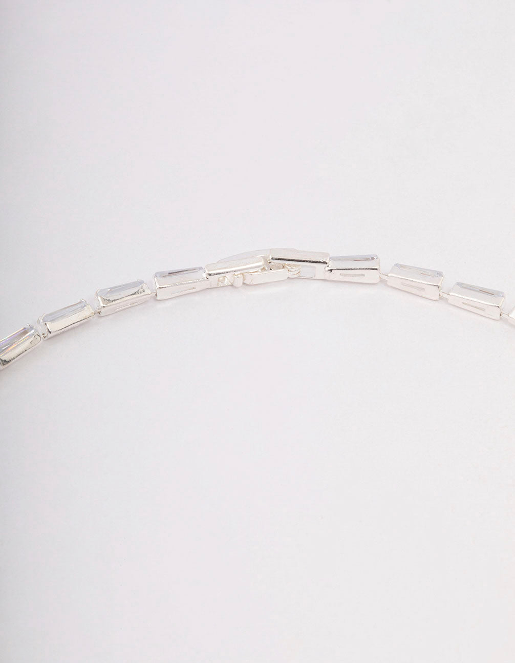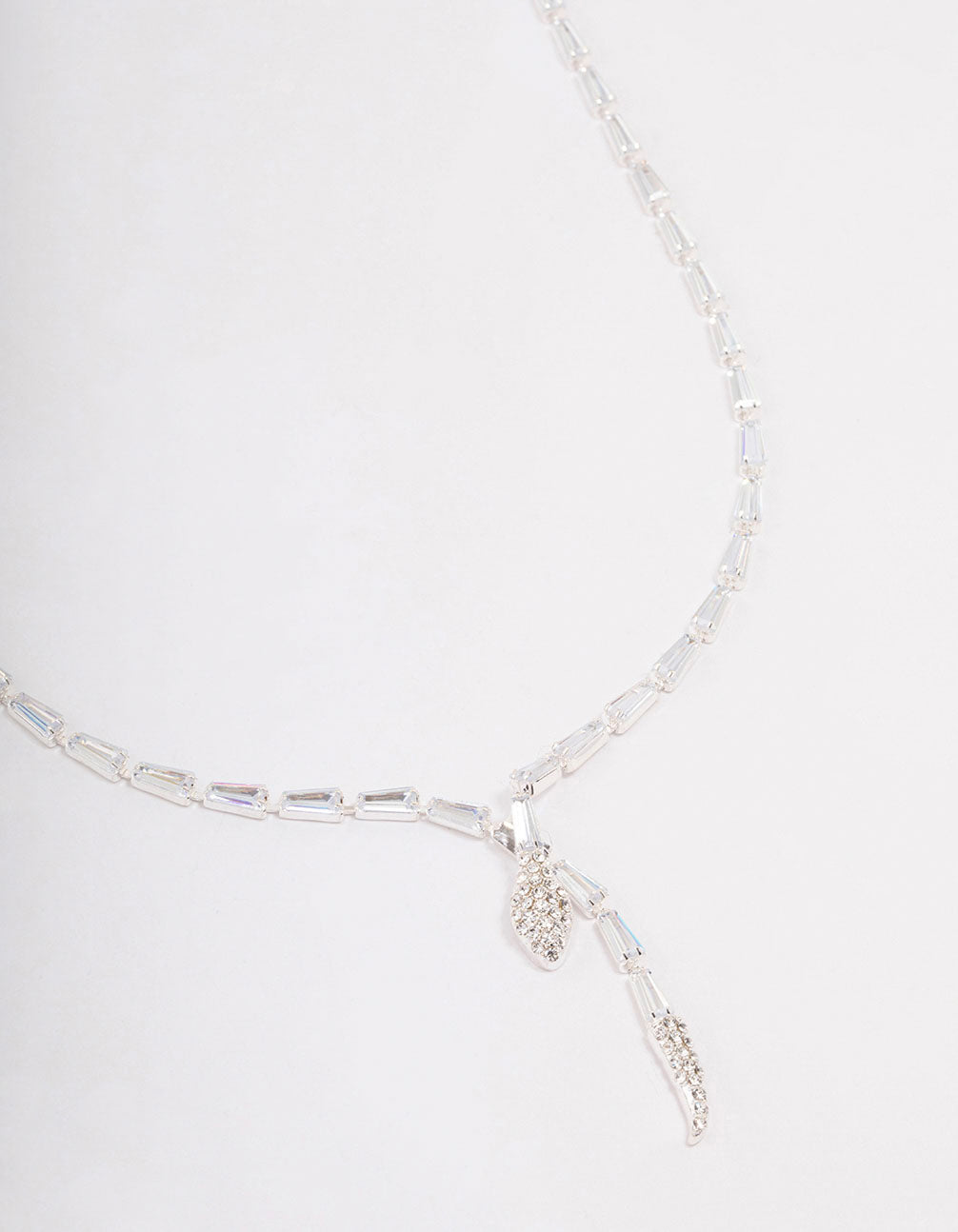 - This dazzling necklace features a stunning silver setting and a baguette Y-shaped snake chain for a modern finish.