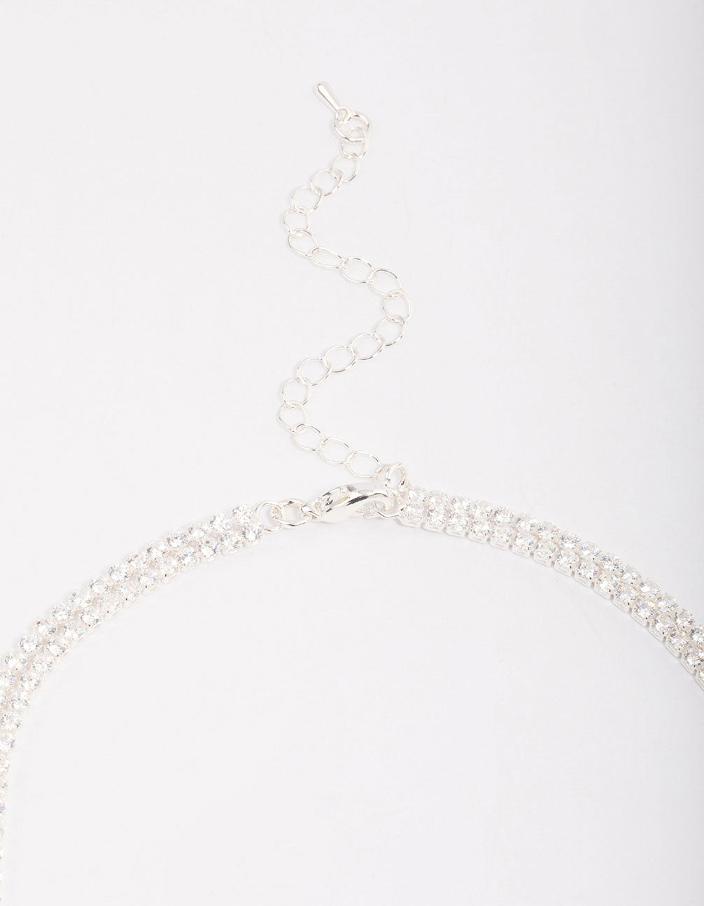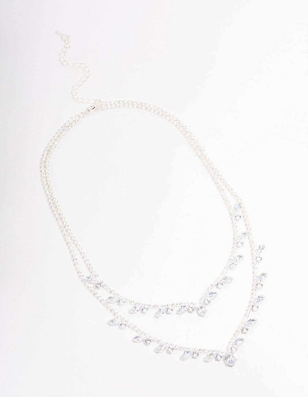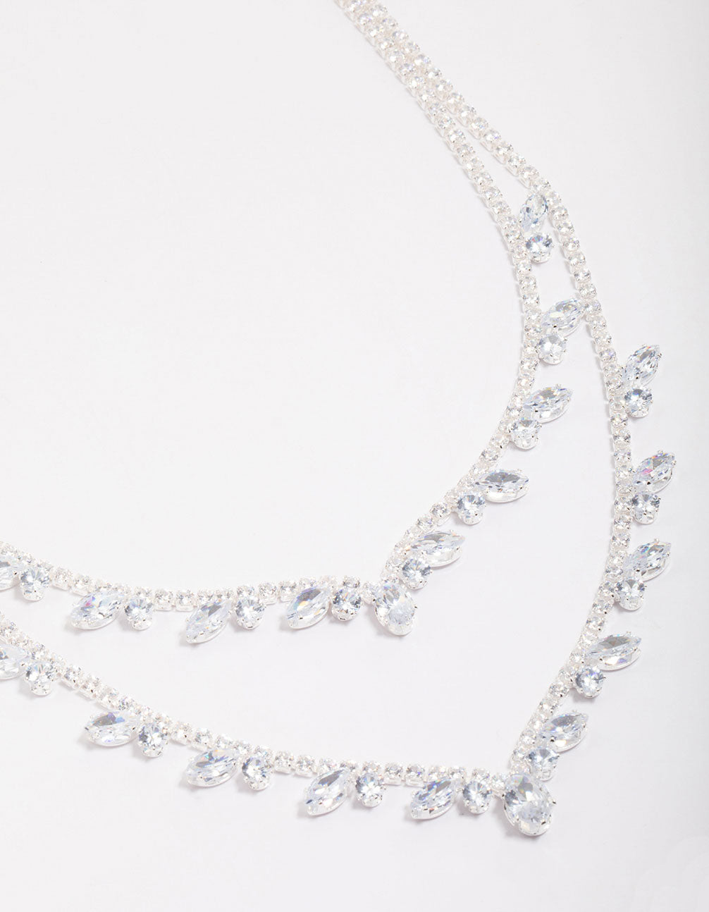 - Style this Silver Cubic Zirconia Double Layer Pear Stone Necklace with a simple choker necklace for a layered look.