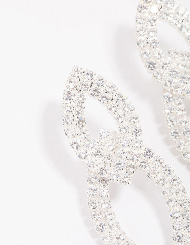 Silver Cubic Zirconia Double Layered Drop Earrings