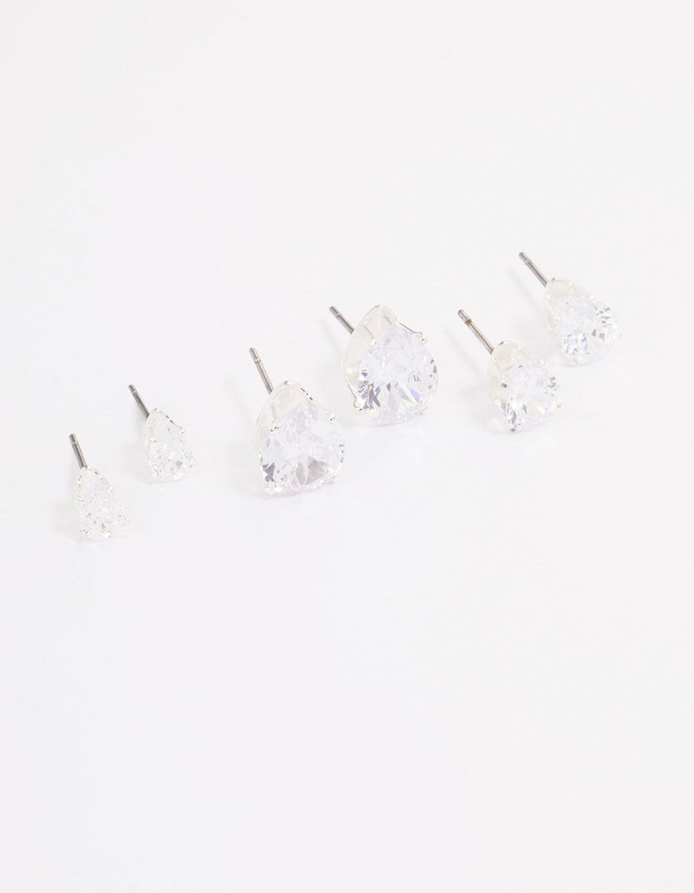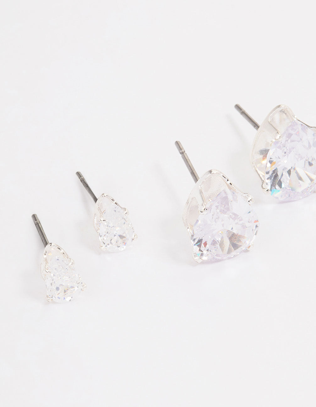 Add a hint of sparkle to your look with premium pieces from our bestselling Cubic Zirconia Collection! Discover this set of Silver Cubic Zirconia Stud Earrings, containing three individual sets of stud earrings. Style this versatile earring pack solo for an understated look, or layer them together for a luxe and maximalist finish to your stack.