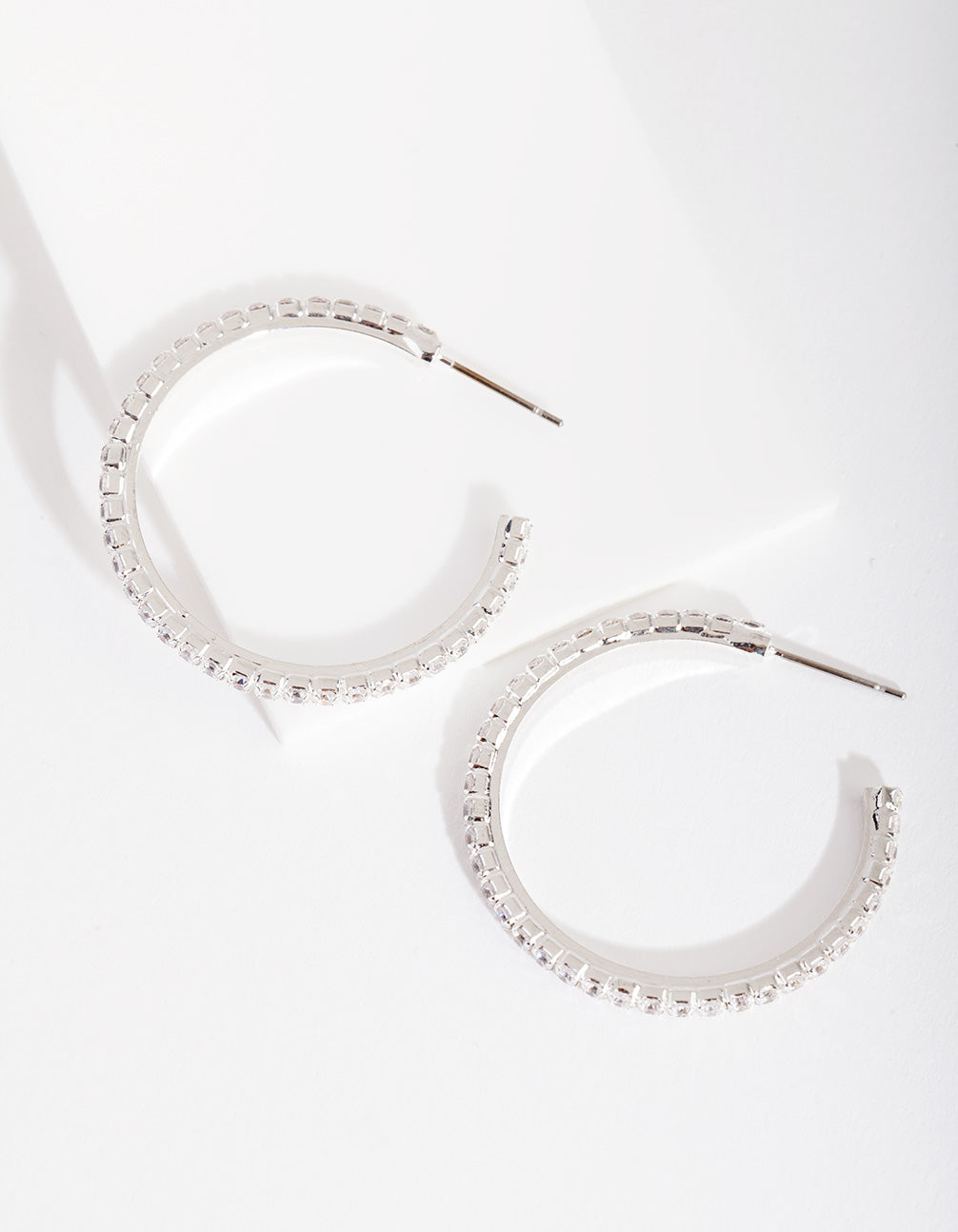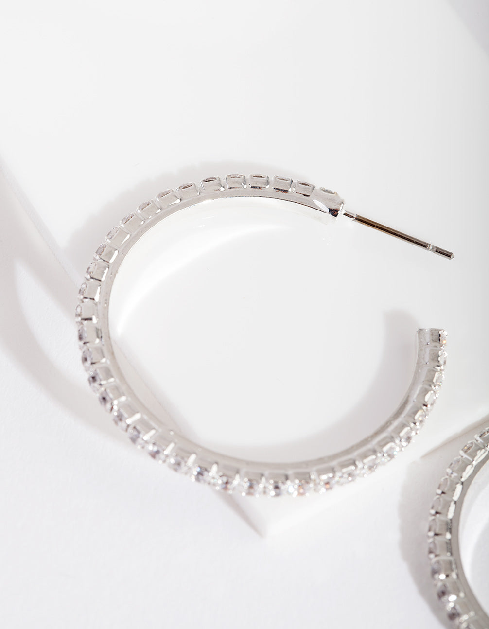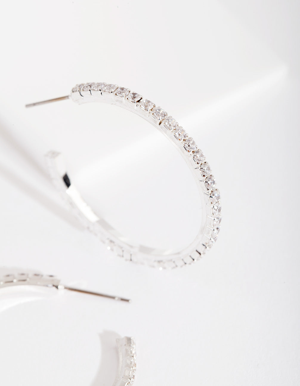 Cubic Zirconia stones provide a luxury look without the high-end price point. Add some sparkle to your daily life! This silver-toned 3mm earring features an embellished hoop design.