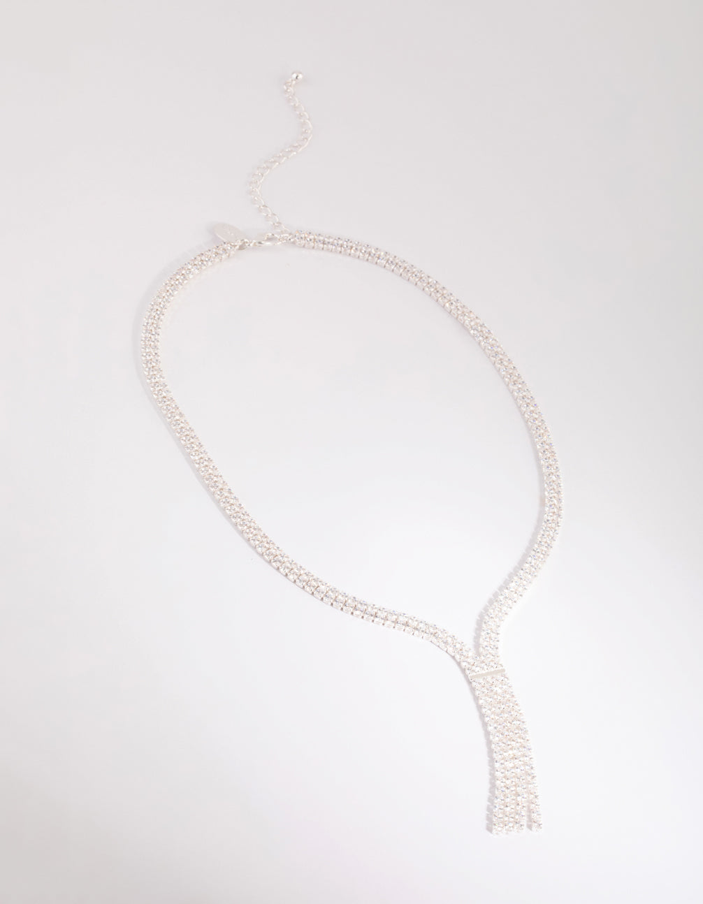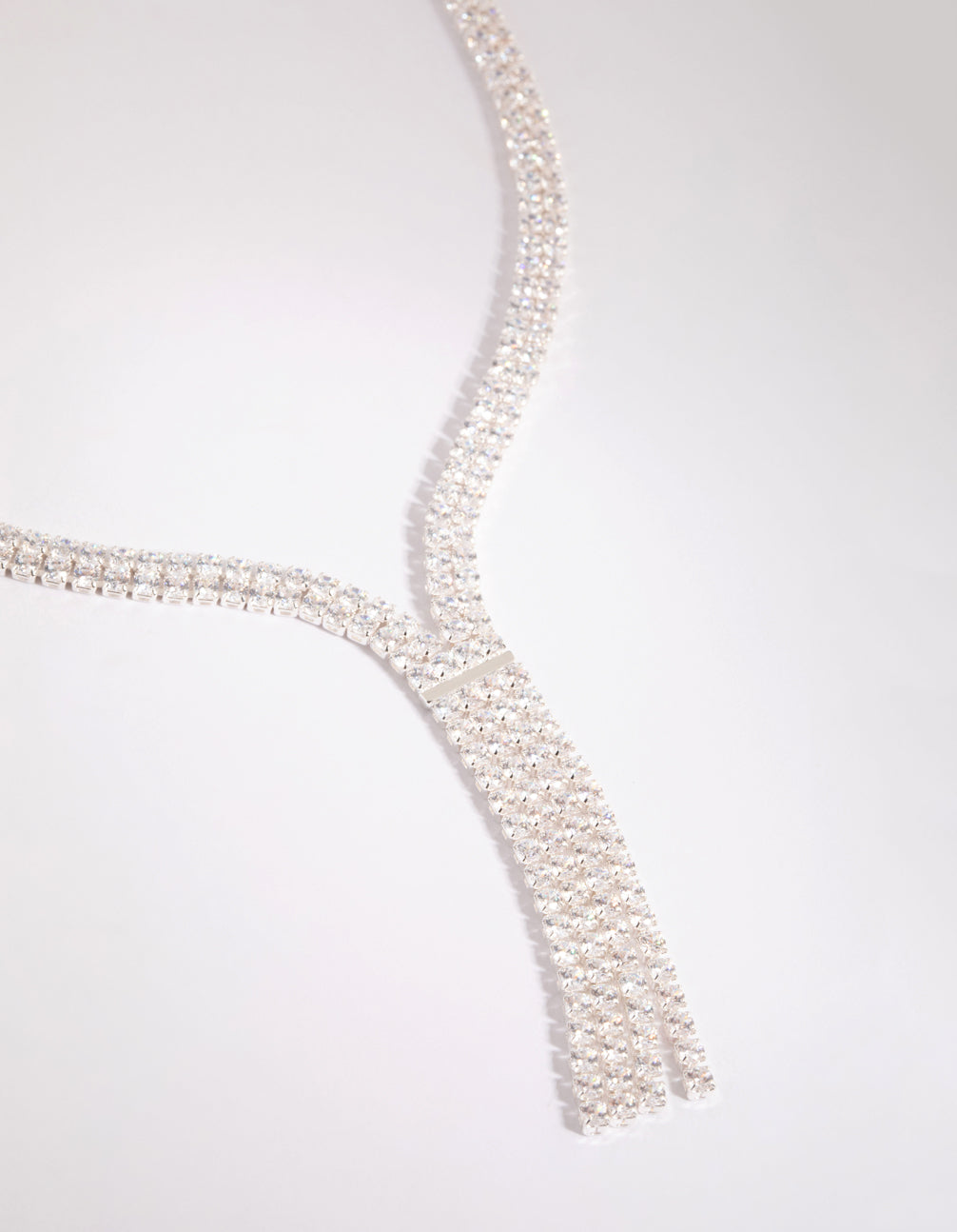 Enjoy the luxury of diamonds with cubic zirconia! These crystals are designed to closely mirror the cut, colour and clarity of true diamonds. This lovely necklace features a plunging design which suits lower necklines. It's silver toned, and features cubic zirconia embellishments. Simply stunning!