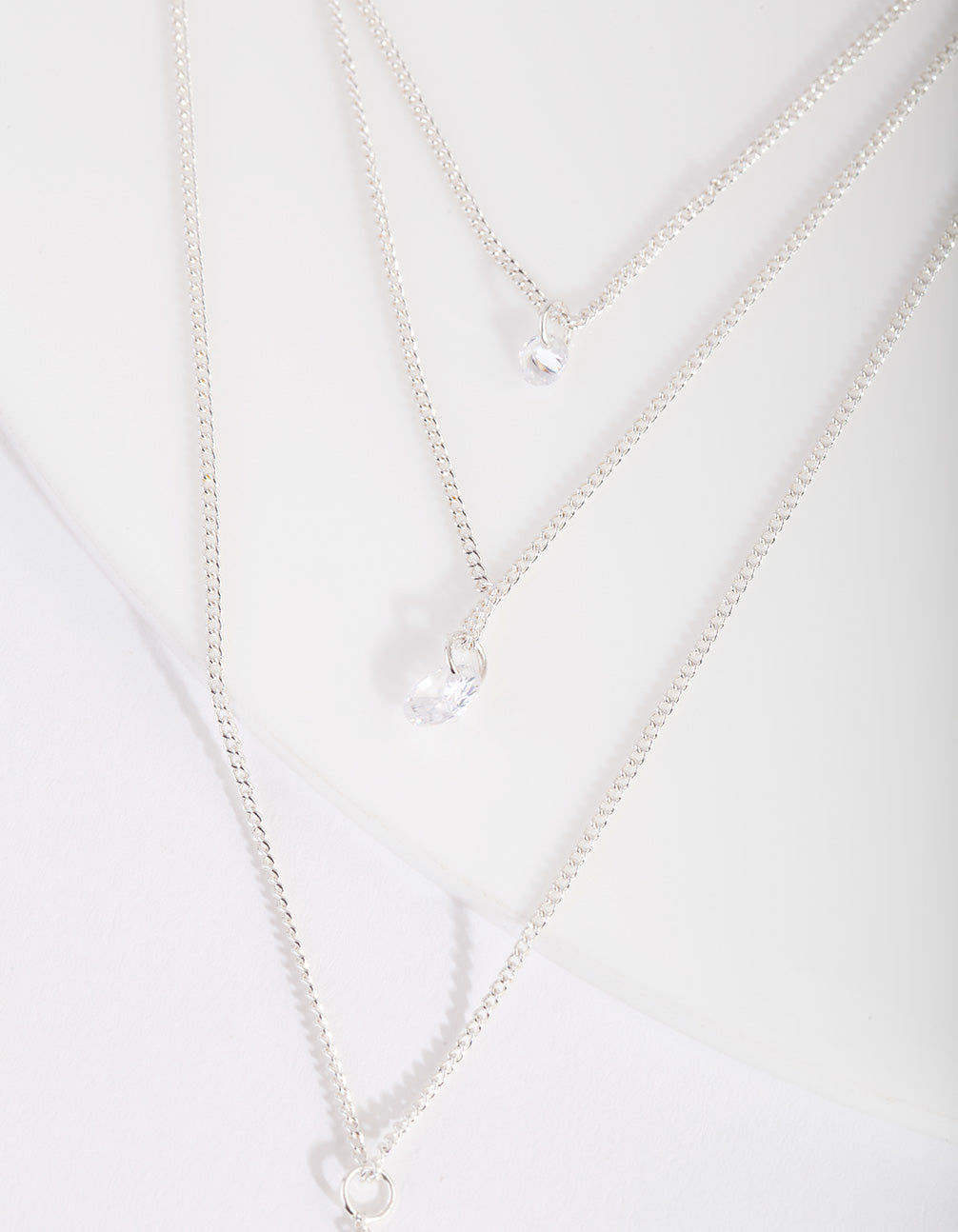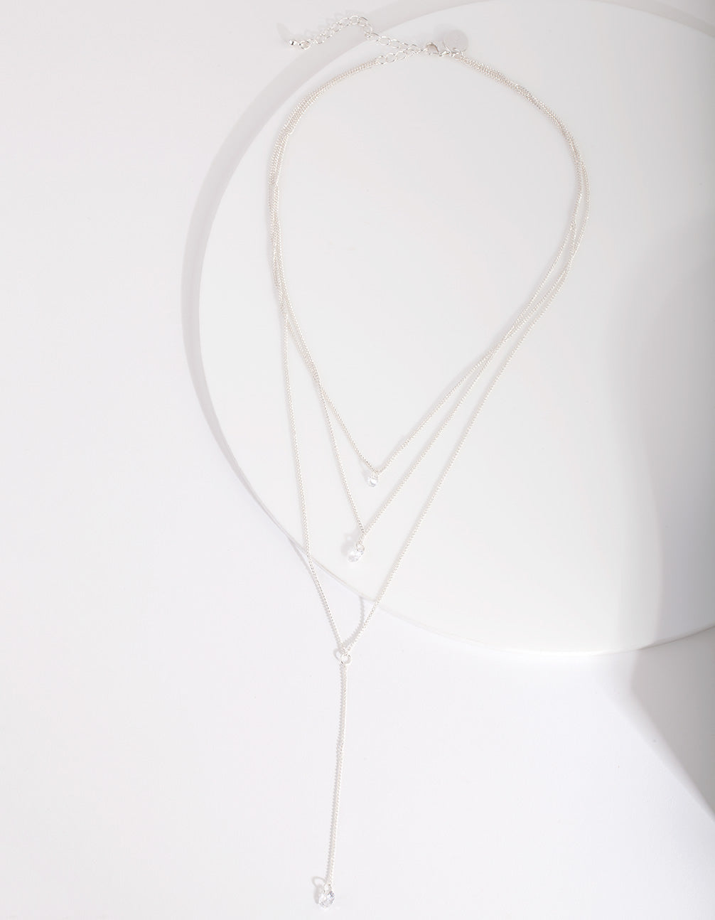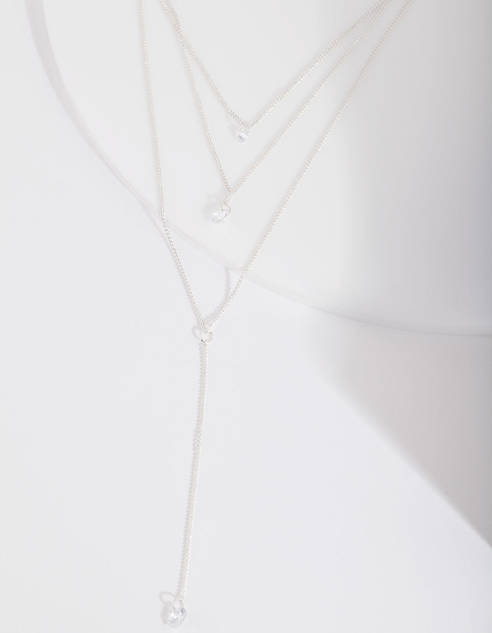 Cubic Zirconia stones provide a luxury look without the high-end price point. Add some sparkle to your daily life! This silver-toned necklace boasts a 3 row design with each row featuring a cubic zirconia charm and one row featuring Y shape detailing.