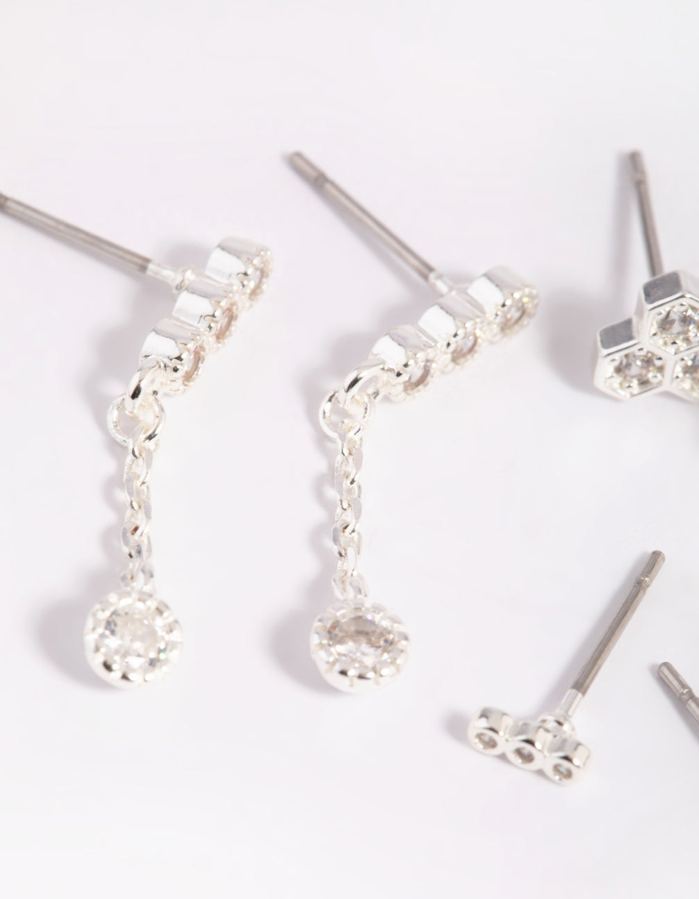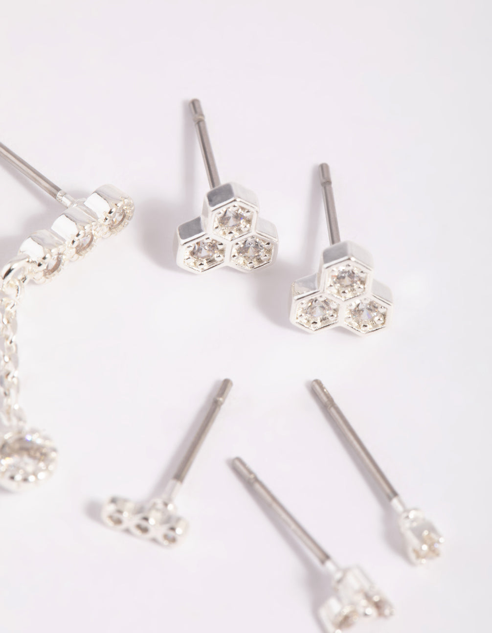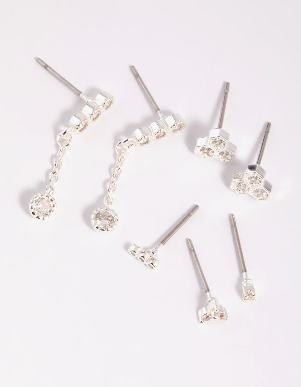 Silver Cubic Zirconia Round Stud Earring 7-Pack