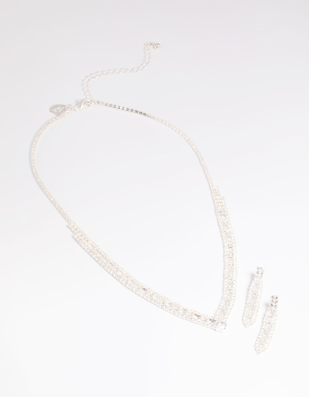 Silver Cubic Zirconia Statement Necklace & Earrings Set